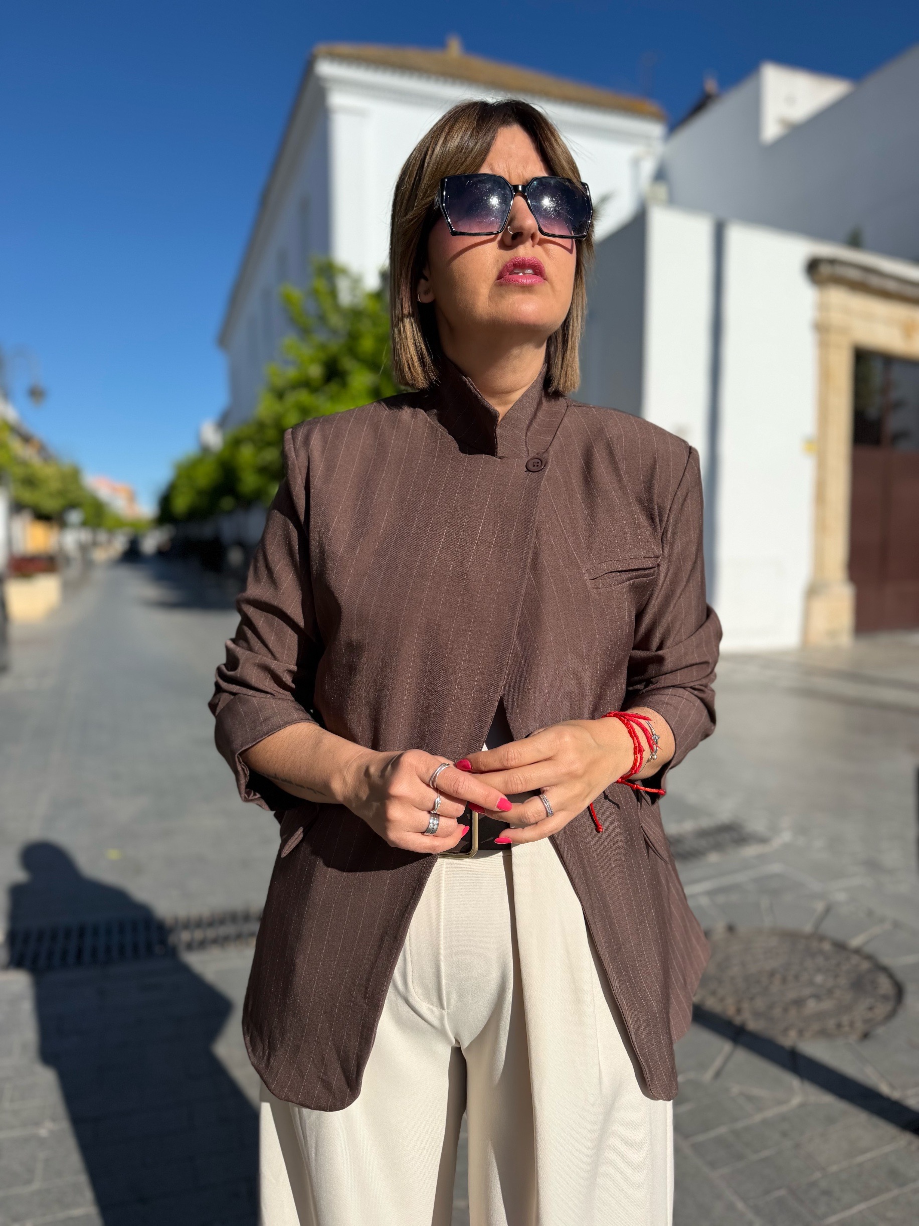 Esta chaqueta de pequeña rallita es el equilibrio perfecto entre elegancia clásica y tendencia actual. Su diseño estructurado, con corte favorecedor y cierre sutil, estiliza la figura al instante y aporta ese aire sofisticado que transforma cualquier look.