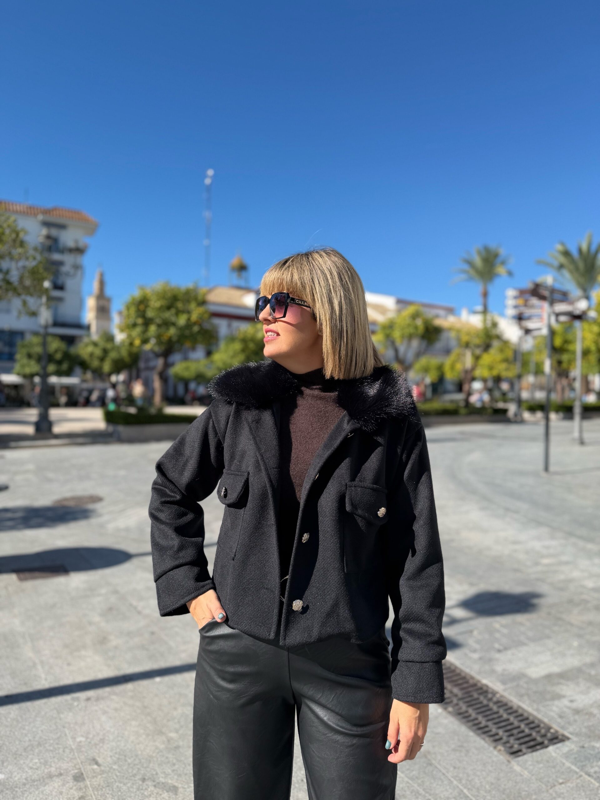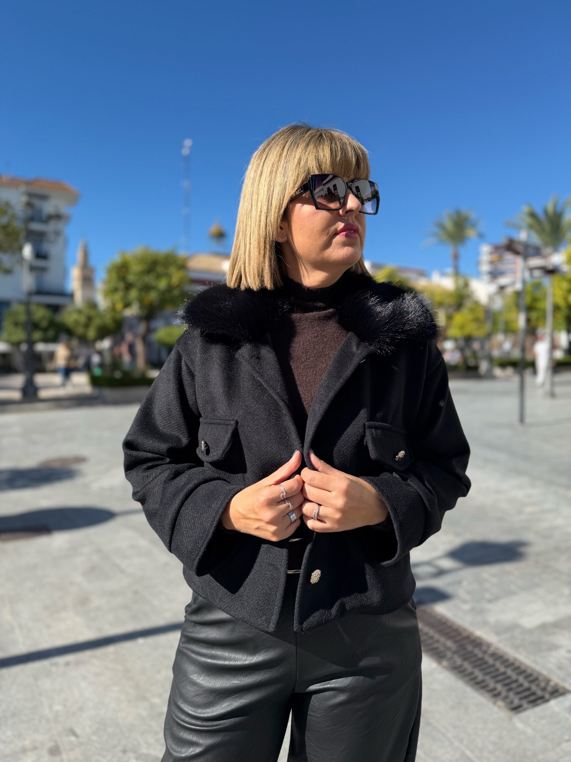 Sé el primero en valorar “Abrigo corto cuello pelo negro.”
