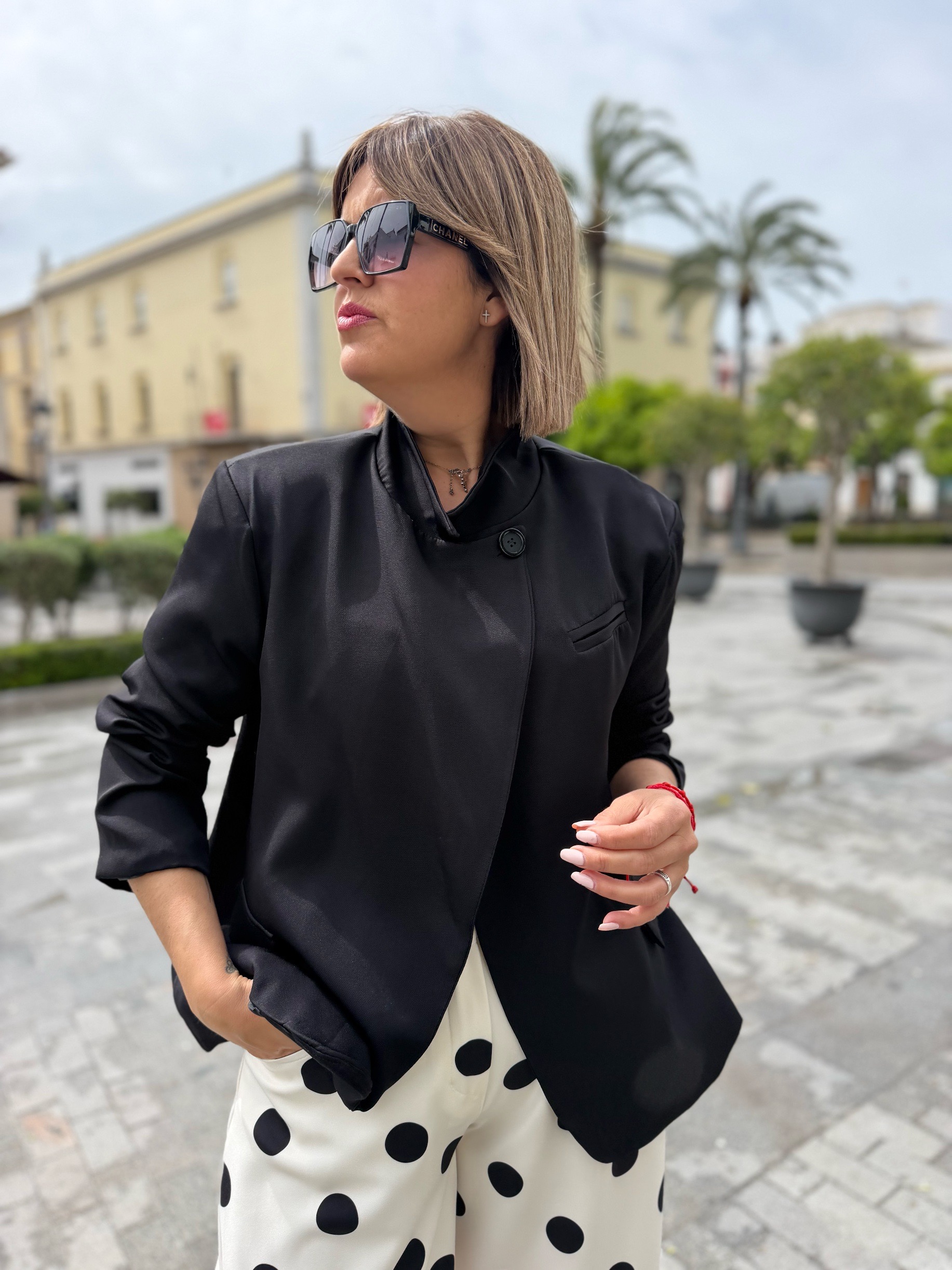 Esta blazer de diseño moderno con cierre de botones en el cuello se ha convertido en una de las prendas más virales del momento. Su corte elegante y diferente eleva cualquier look al instante, aportando ese aire sofisticado y actual que marca tendencia.