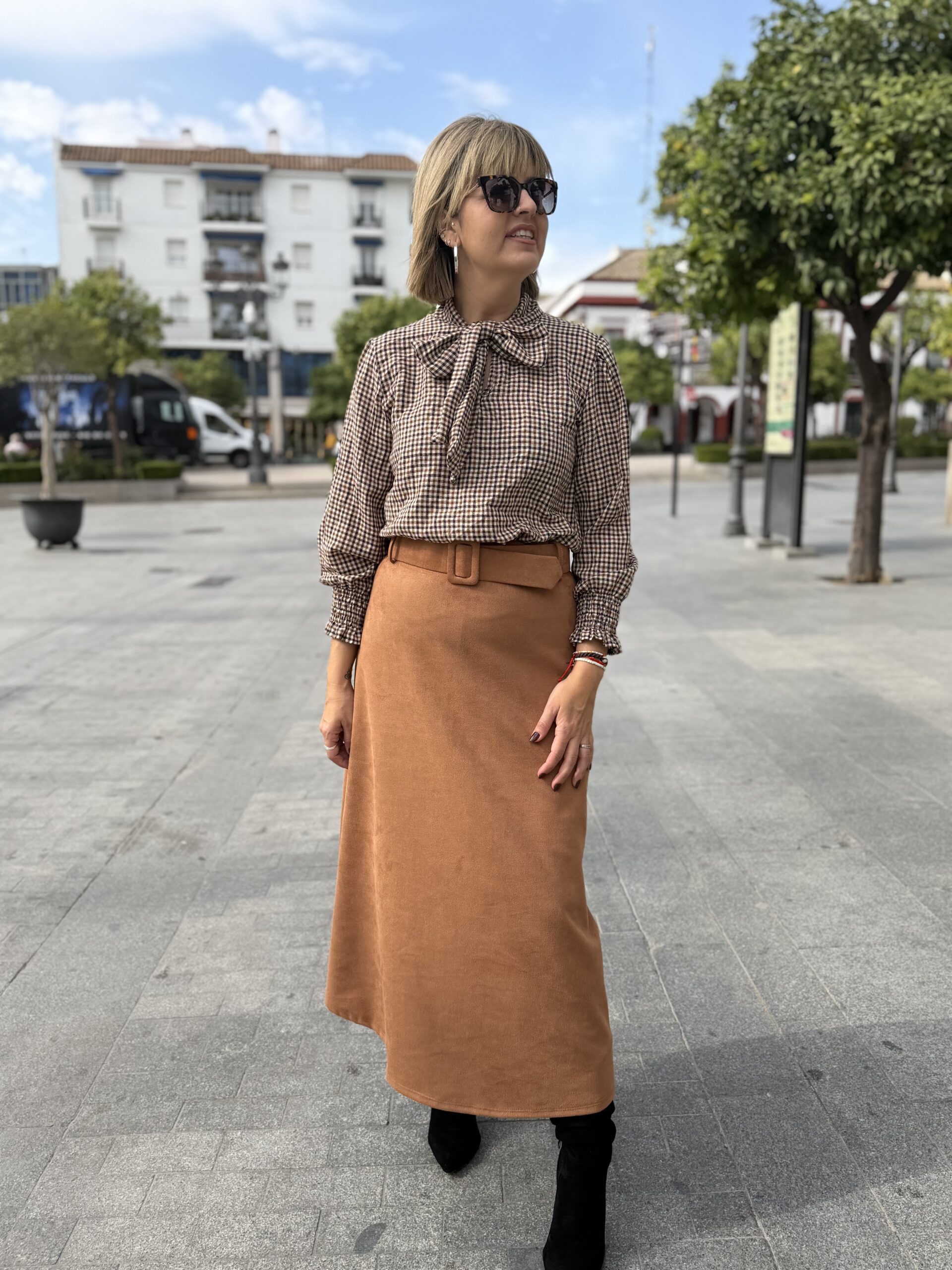 Camisa de cuadro vivhy en tonos beige, marrón y granate. Con detalle de lazo anudado al cuelo que le da un toque súper elegante. En talla única (110 ctms de contorno). Combinan genial con nuestro nuevo pantalón balón en color granate pero es combinable prácticamente con todo.