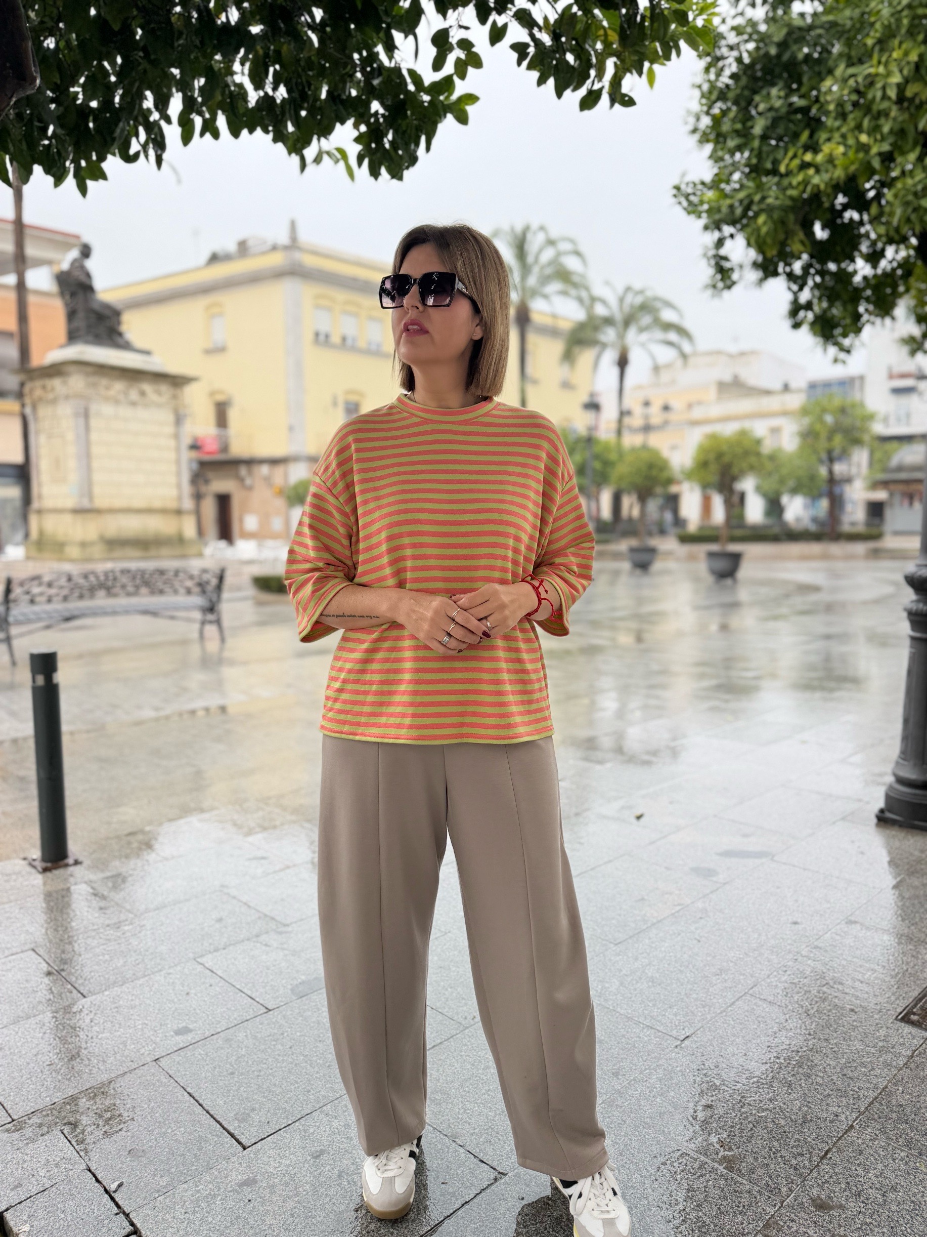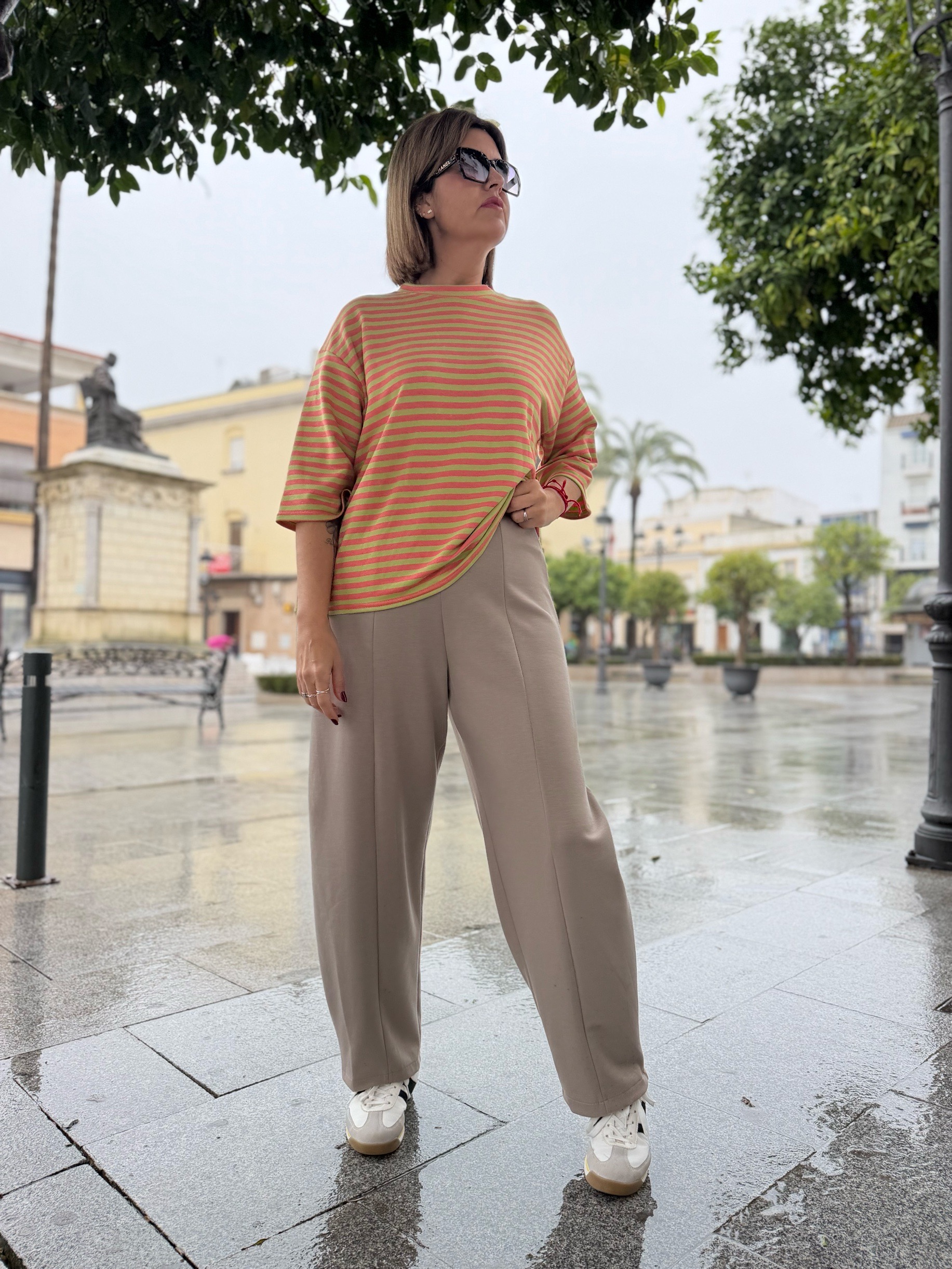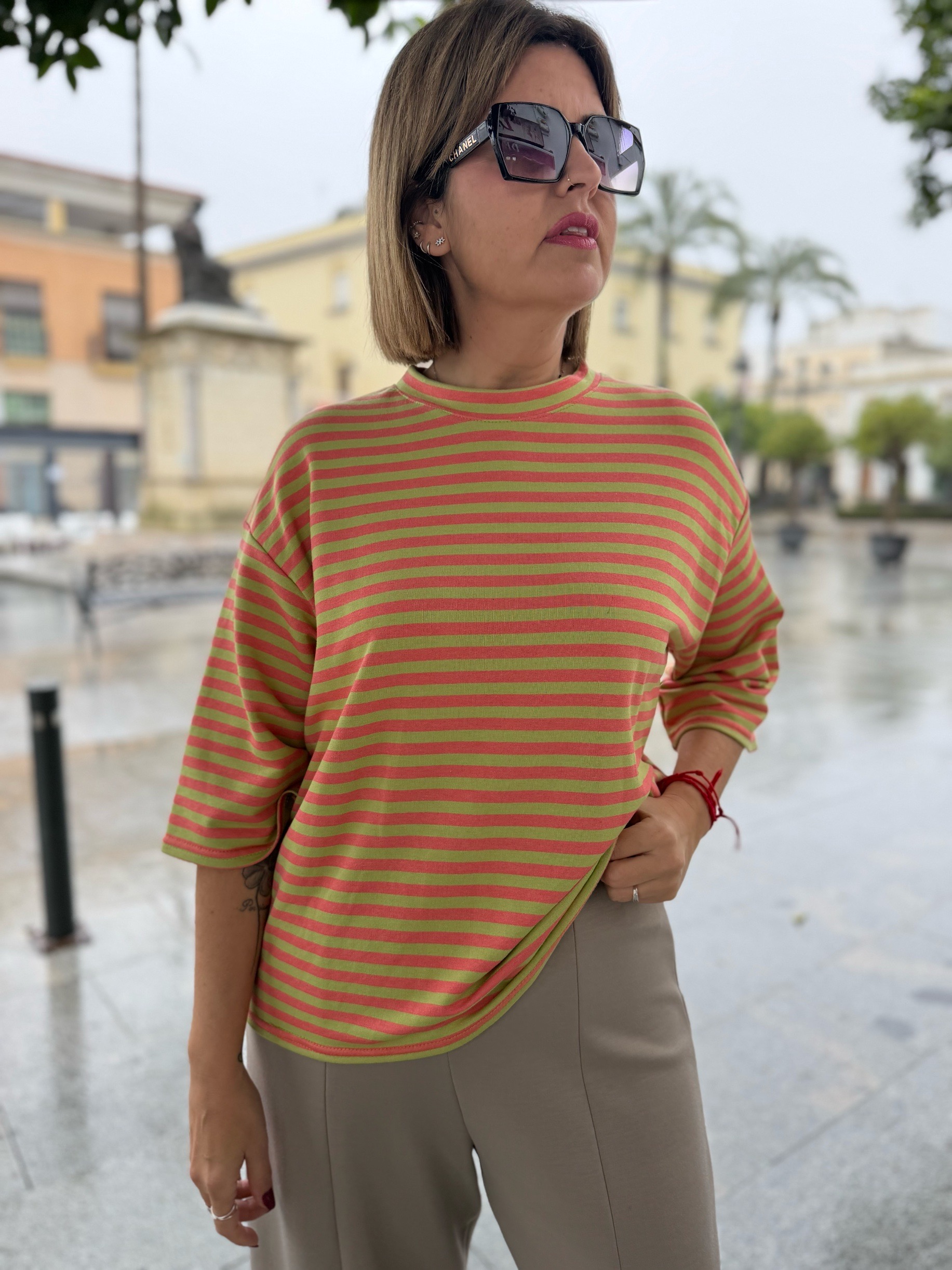 Camiseta en tejido de gran calidad. Con estampado a rayas que tanto se lleva y que podrás llevar prácticamente con todo, montándote un outfit casual, cómodo pero con estilo. Es la típica camiseta simple pero que llama la atención jiji…