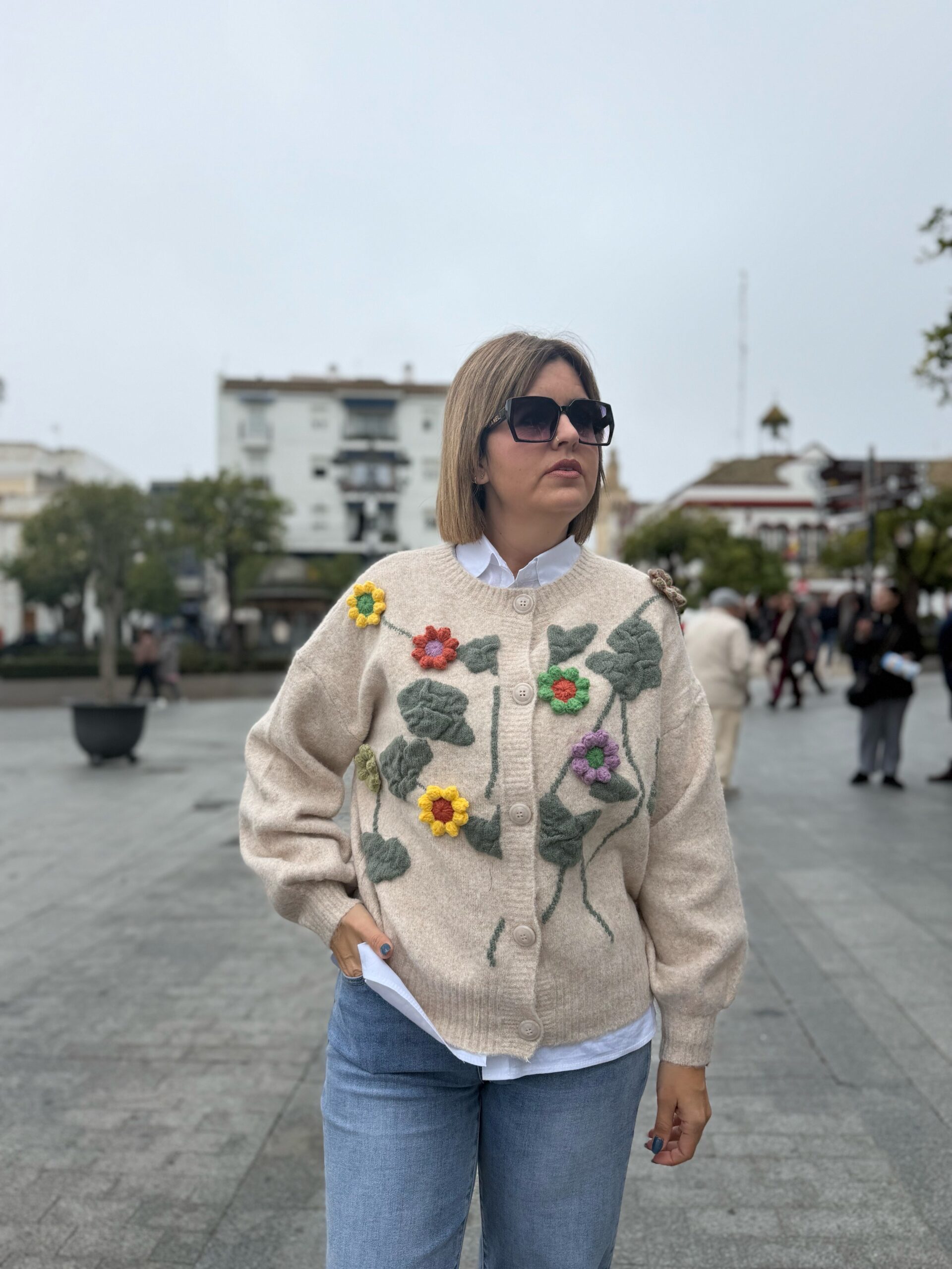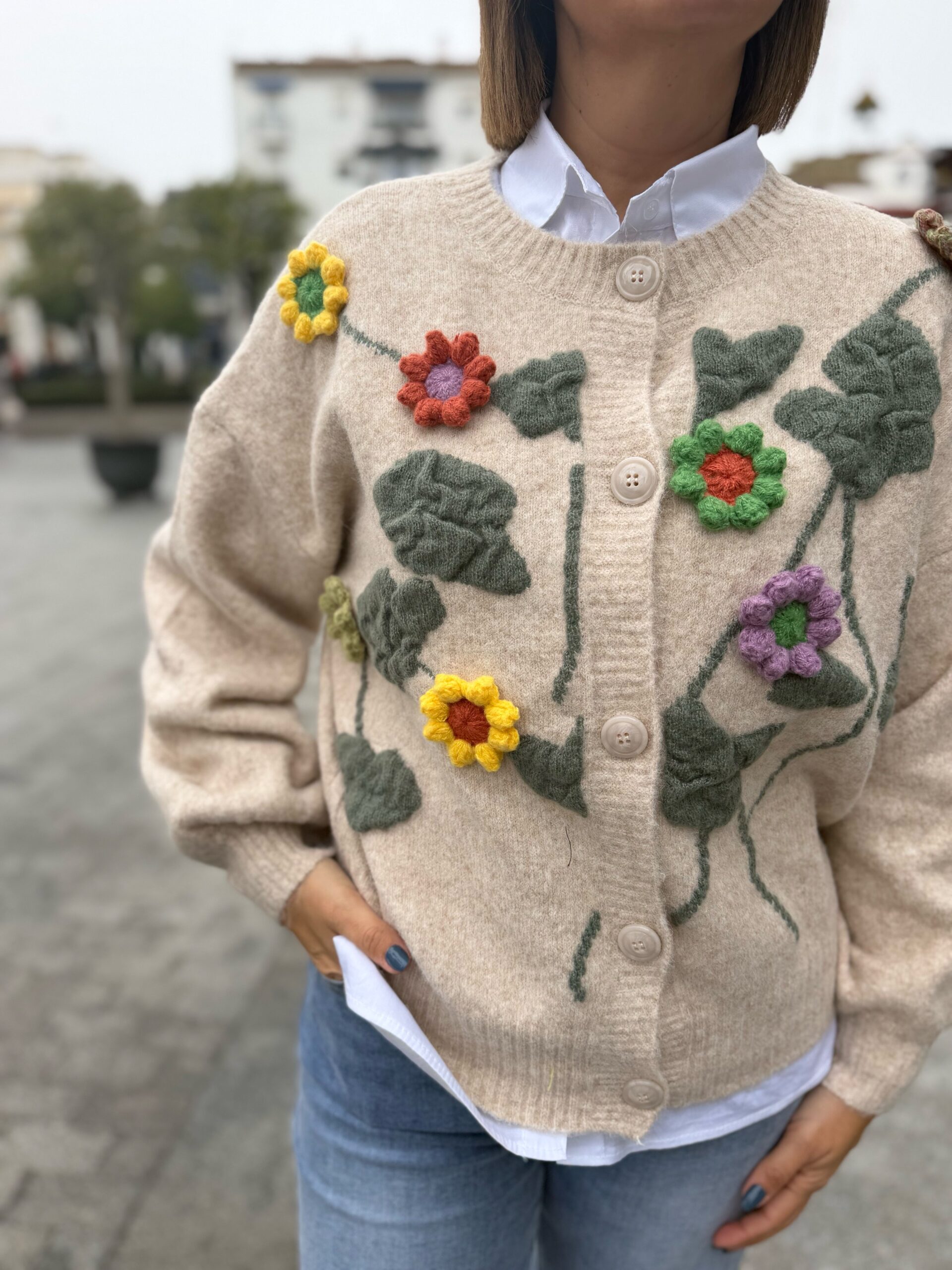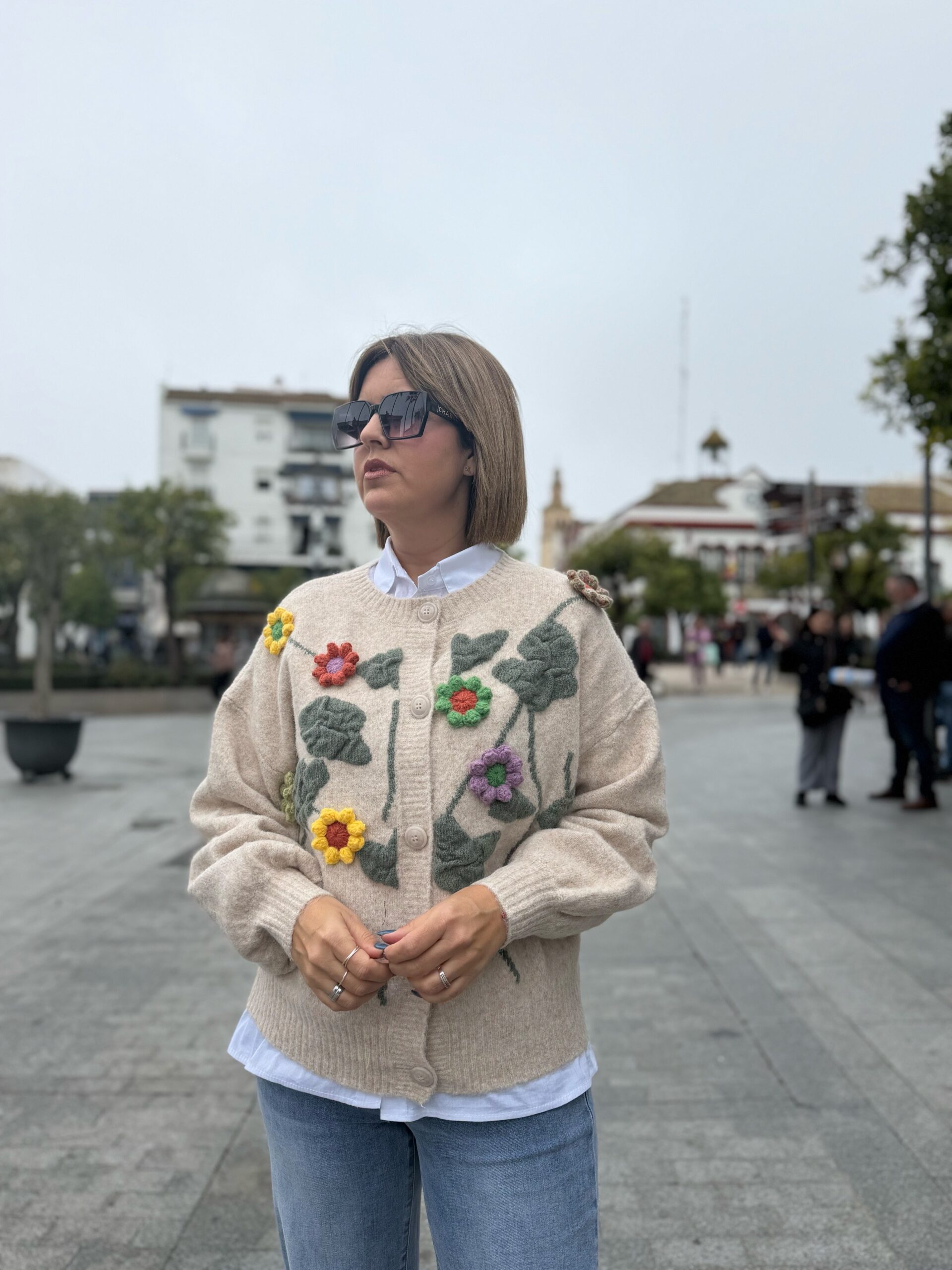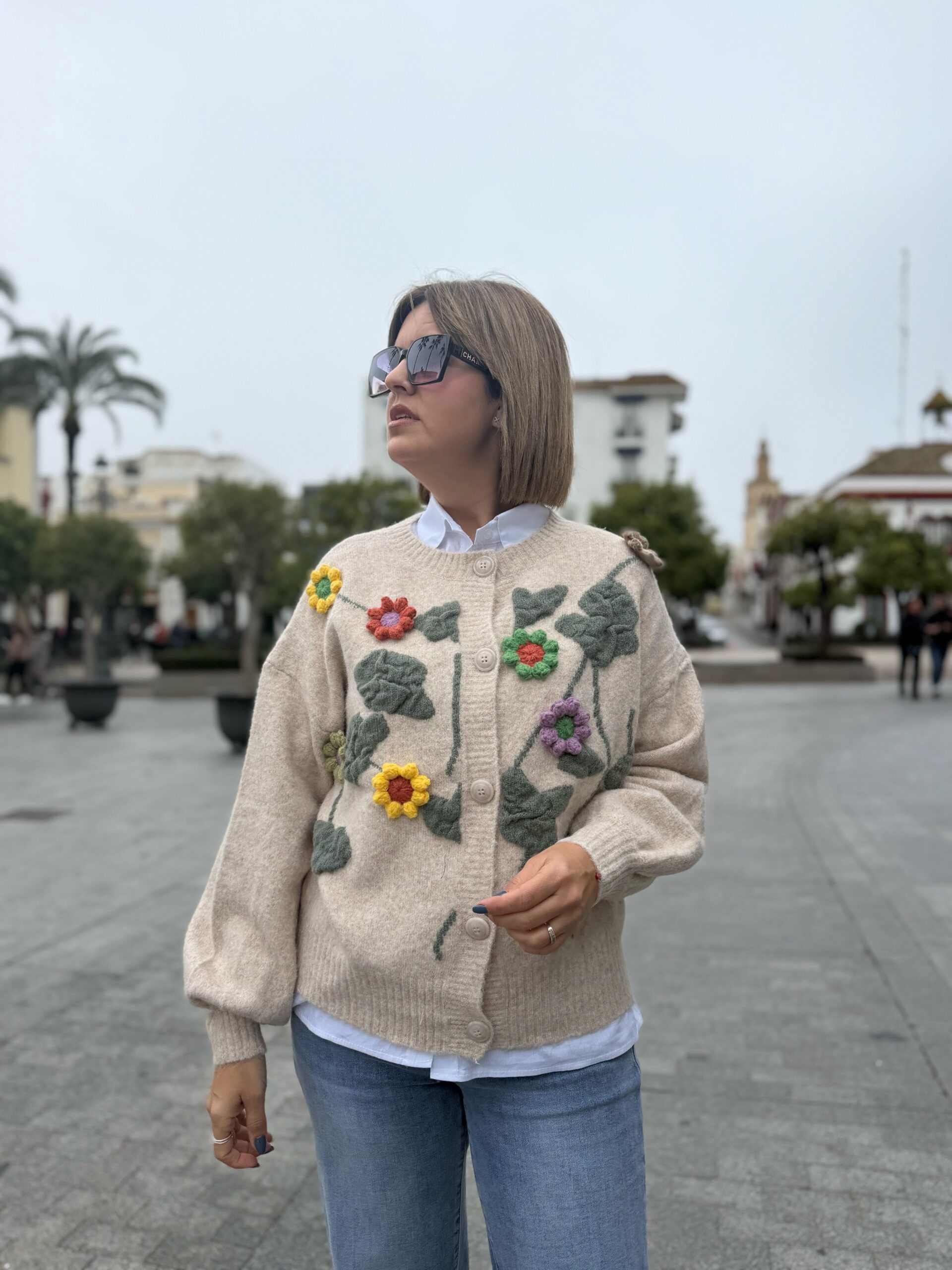 Sé el primero en valorar “Cardigan flores premium beige.”