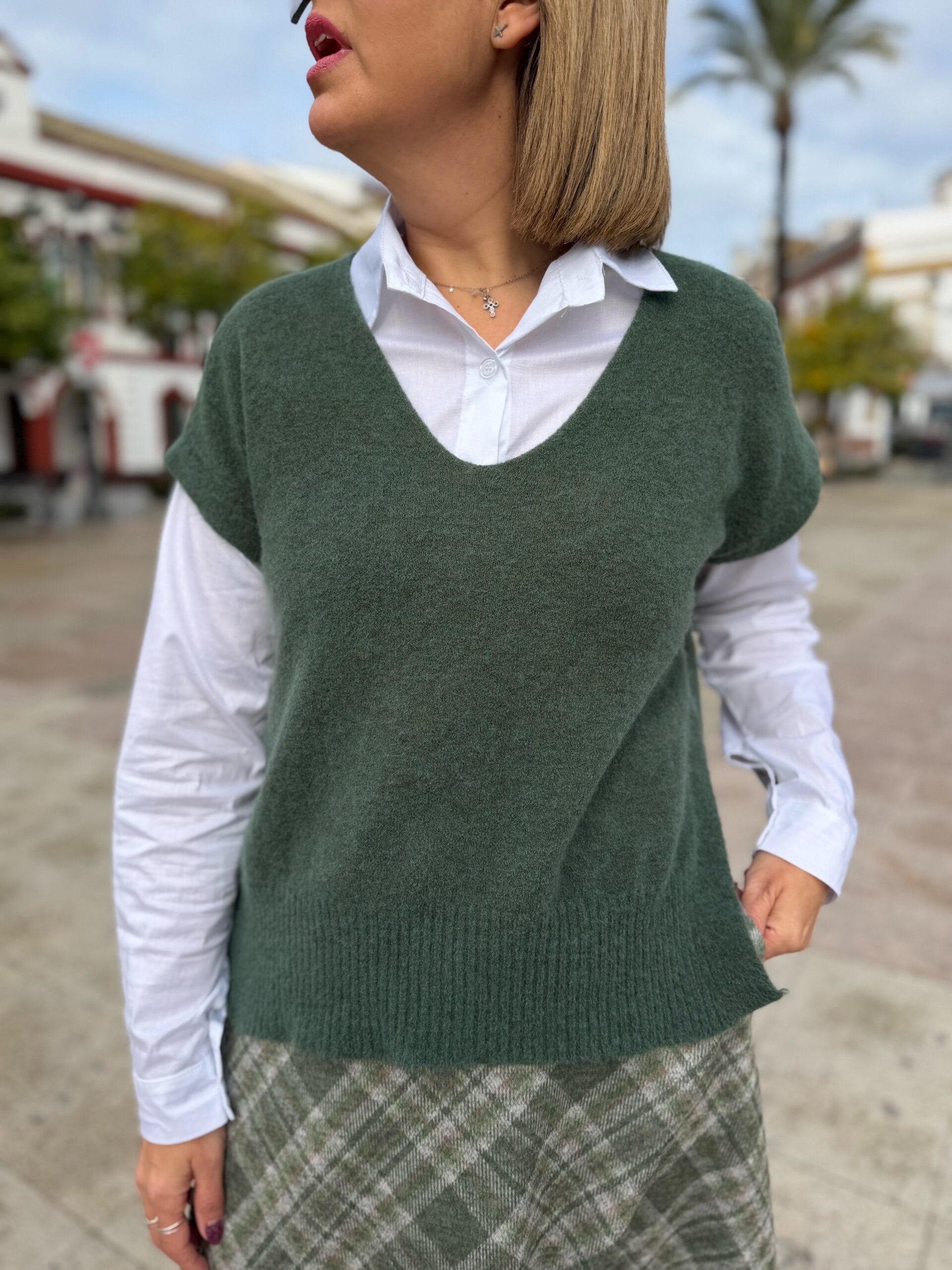 Chaleco en tejido súper suave al tacto con detalle de botones dorado en ambos lados y abertura. Un chaleco ideal,para completar cualquier outfit con una camisa debajo. En talla única pero que abarca muchísimas tallas (130 ctms de contorno).