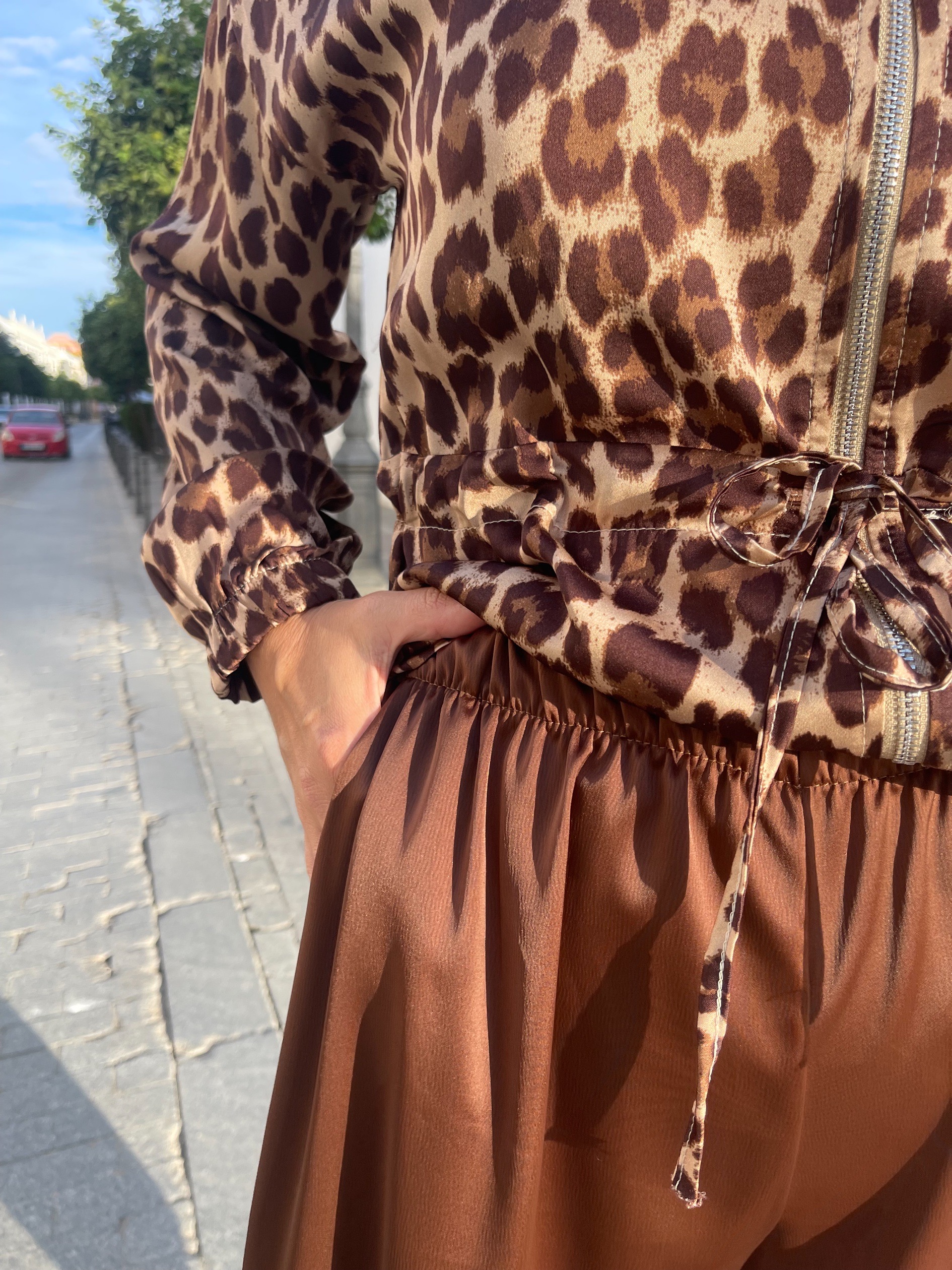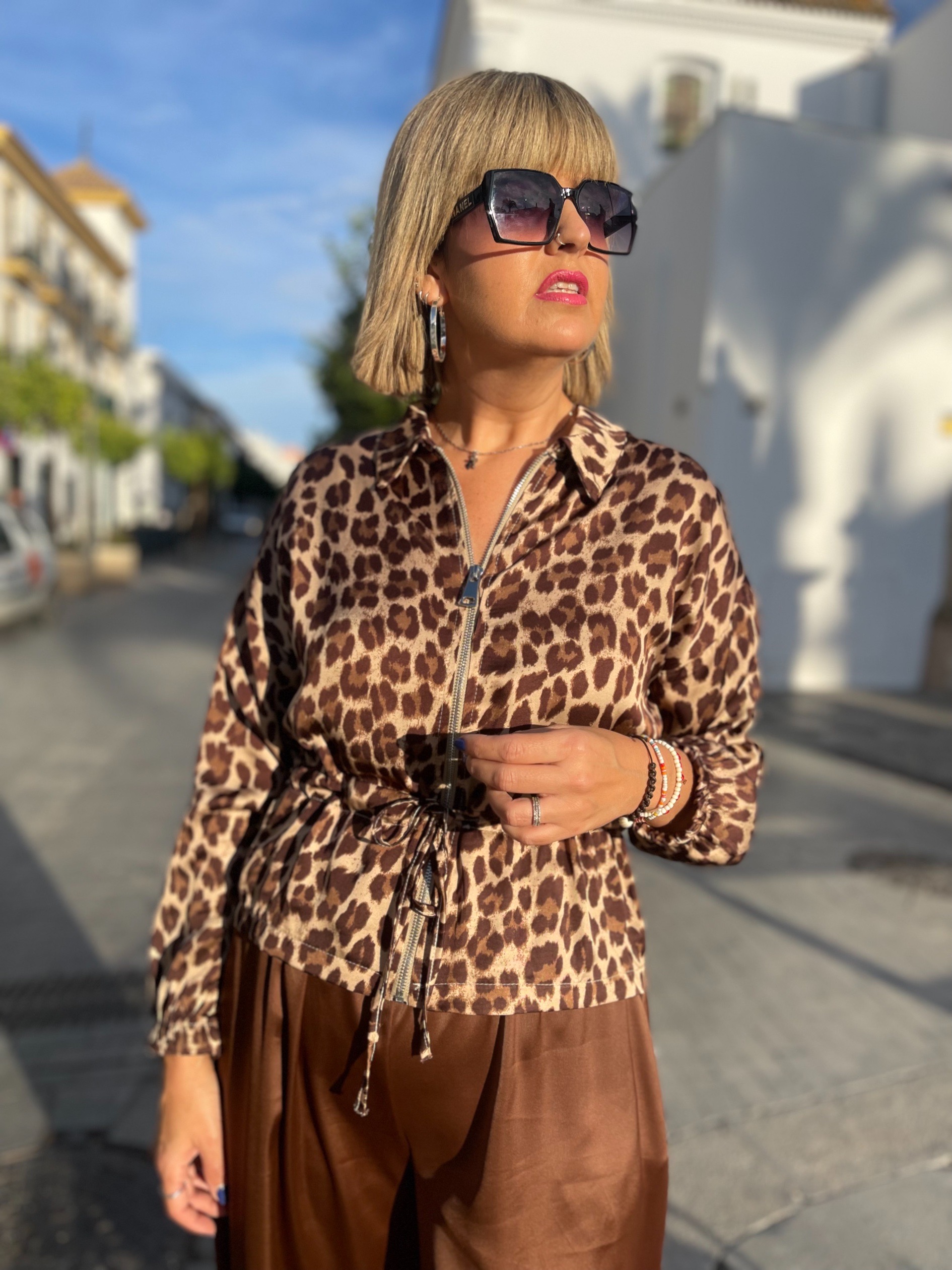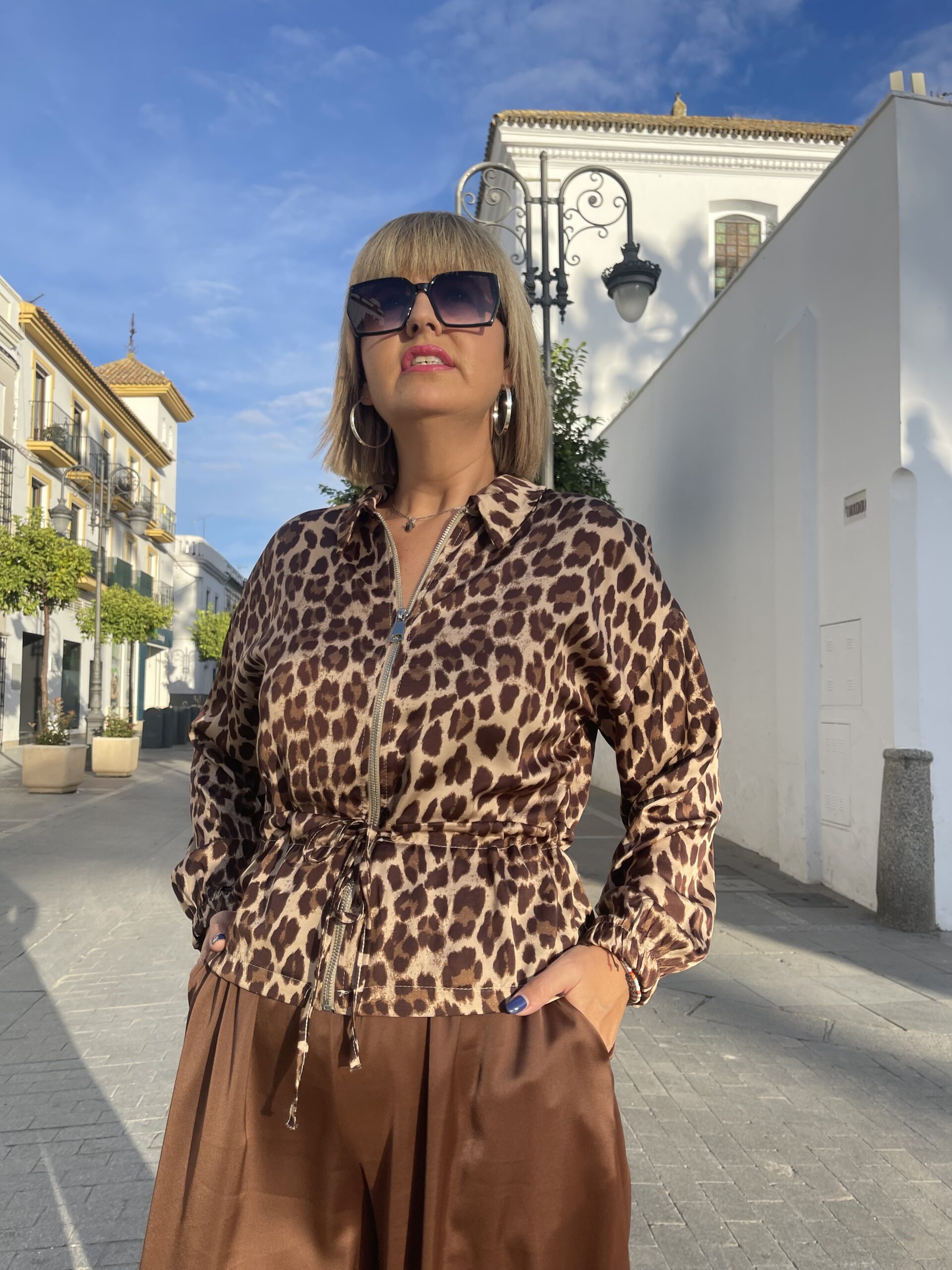Sé el primero en valorar “Chaqueta fruncida animal print marrón”