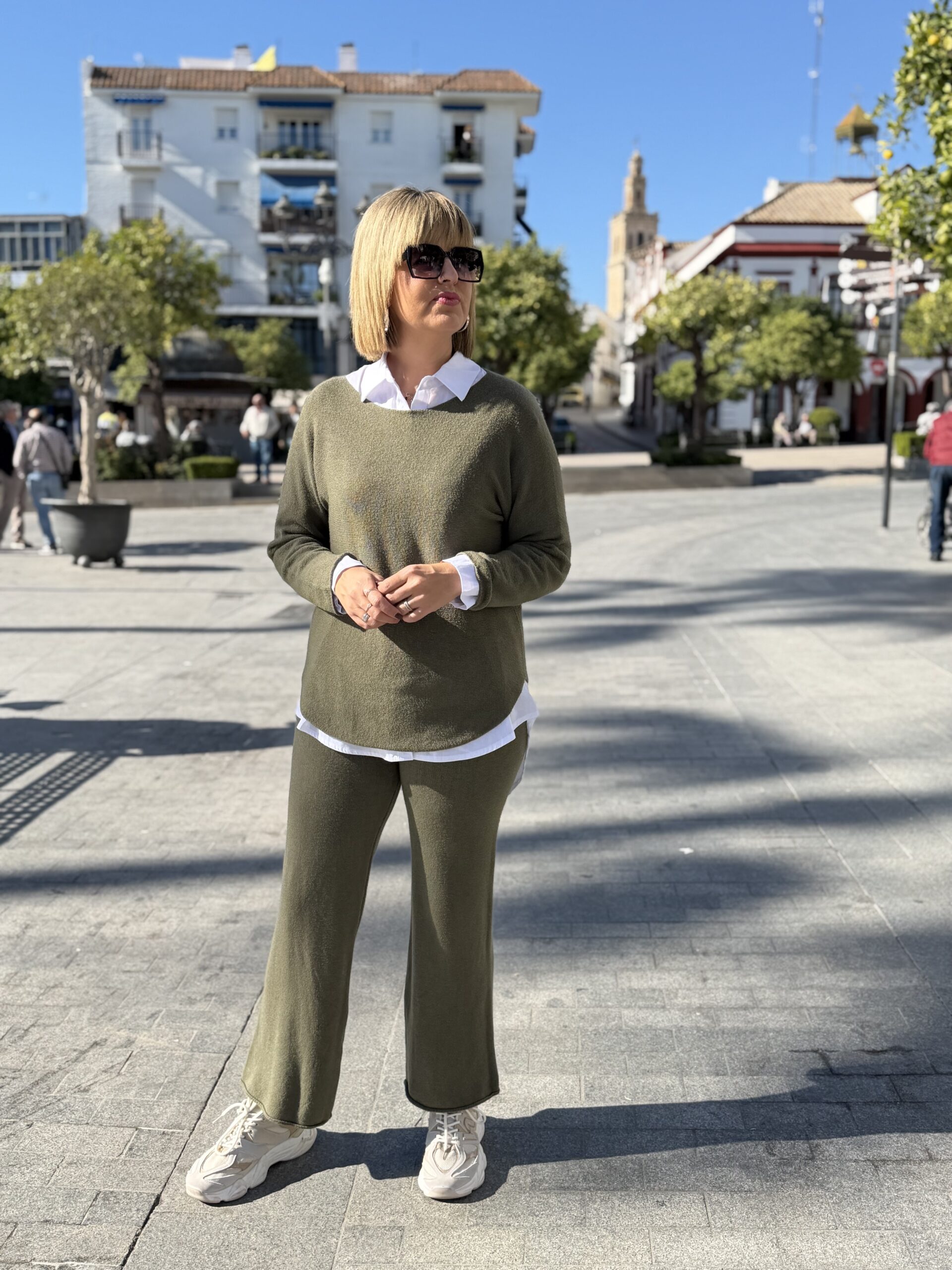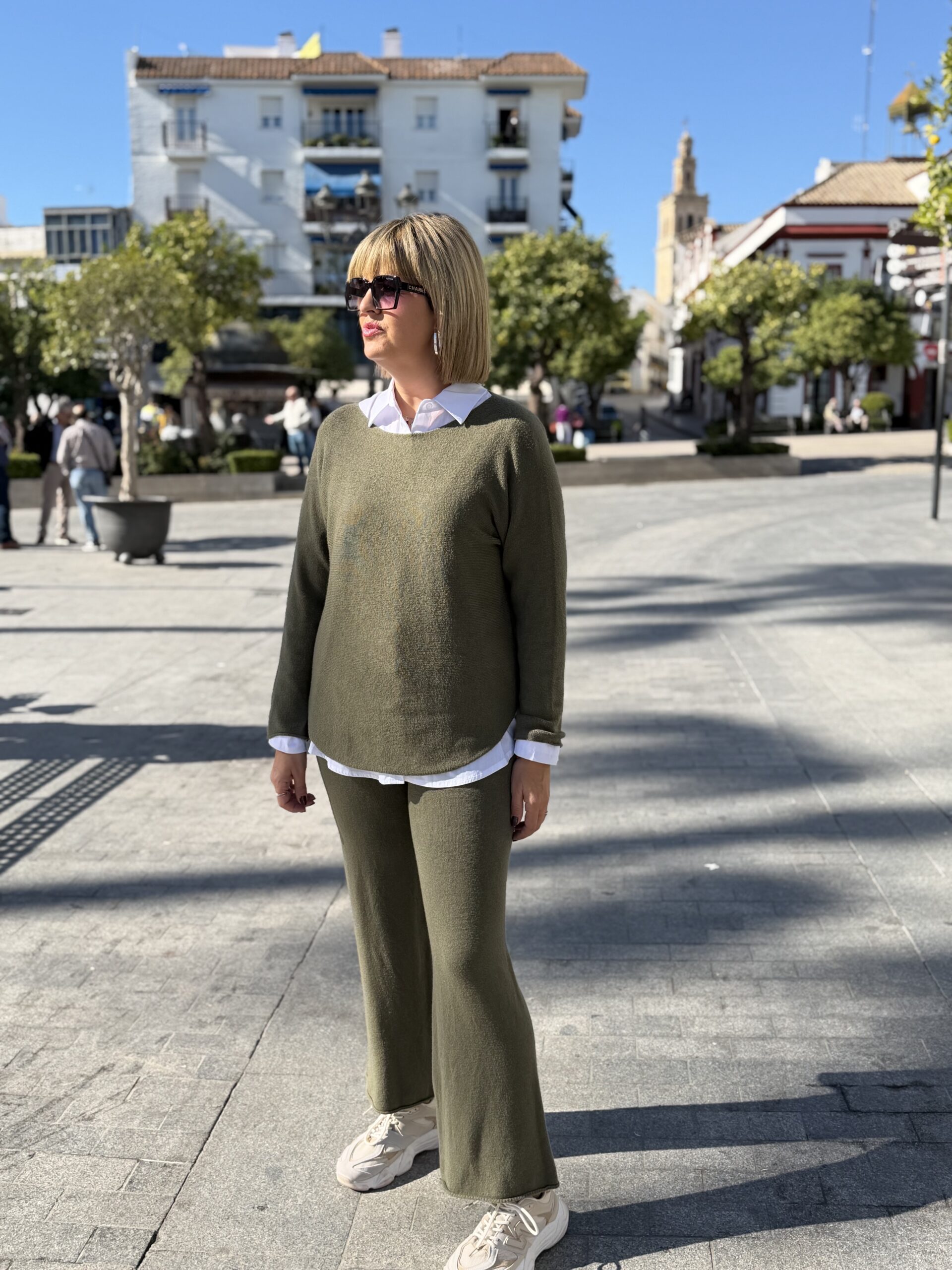 Conjunto de jersey y pantalón a juego en tejido de punto muy, muy cómodo y confortable. En talla única pero que al temer tanta licra se adapta perfectamente a tallas de entre 38 y 42, podría dar más talla pero ya quedaría más pegado jiji….