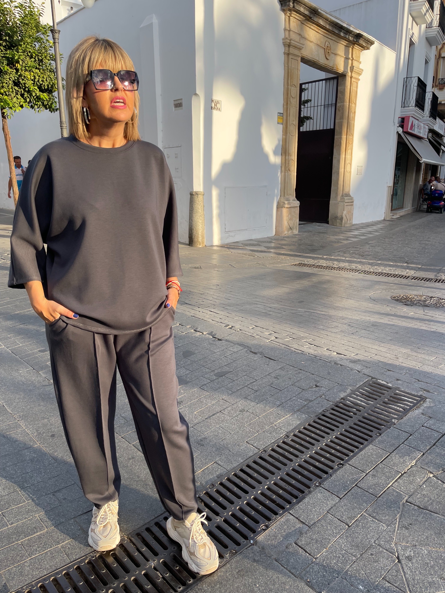 Cómodo, ligero y lo mejor de todo es que no necesitas plancharlo ya que viene hecho en tejido de capa de aire que tan de moda está. Se adapta a ti sin apretar y con ese rollo chic que pega con todo. Pantal-ón con cinturilla elástica, costura vertical que estiliza muchísimo y un corte globo súper actual. La sudadera a juego lo completa para que vayas arreglada co cero esfuerzo.