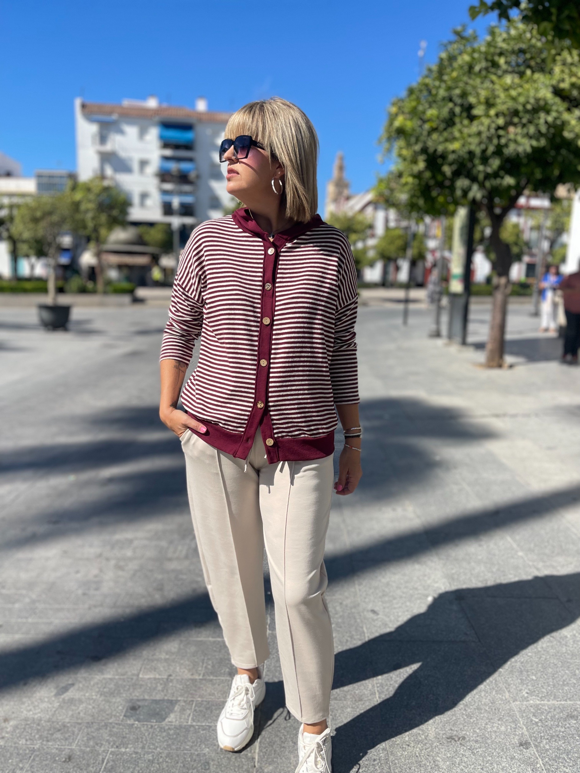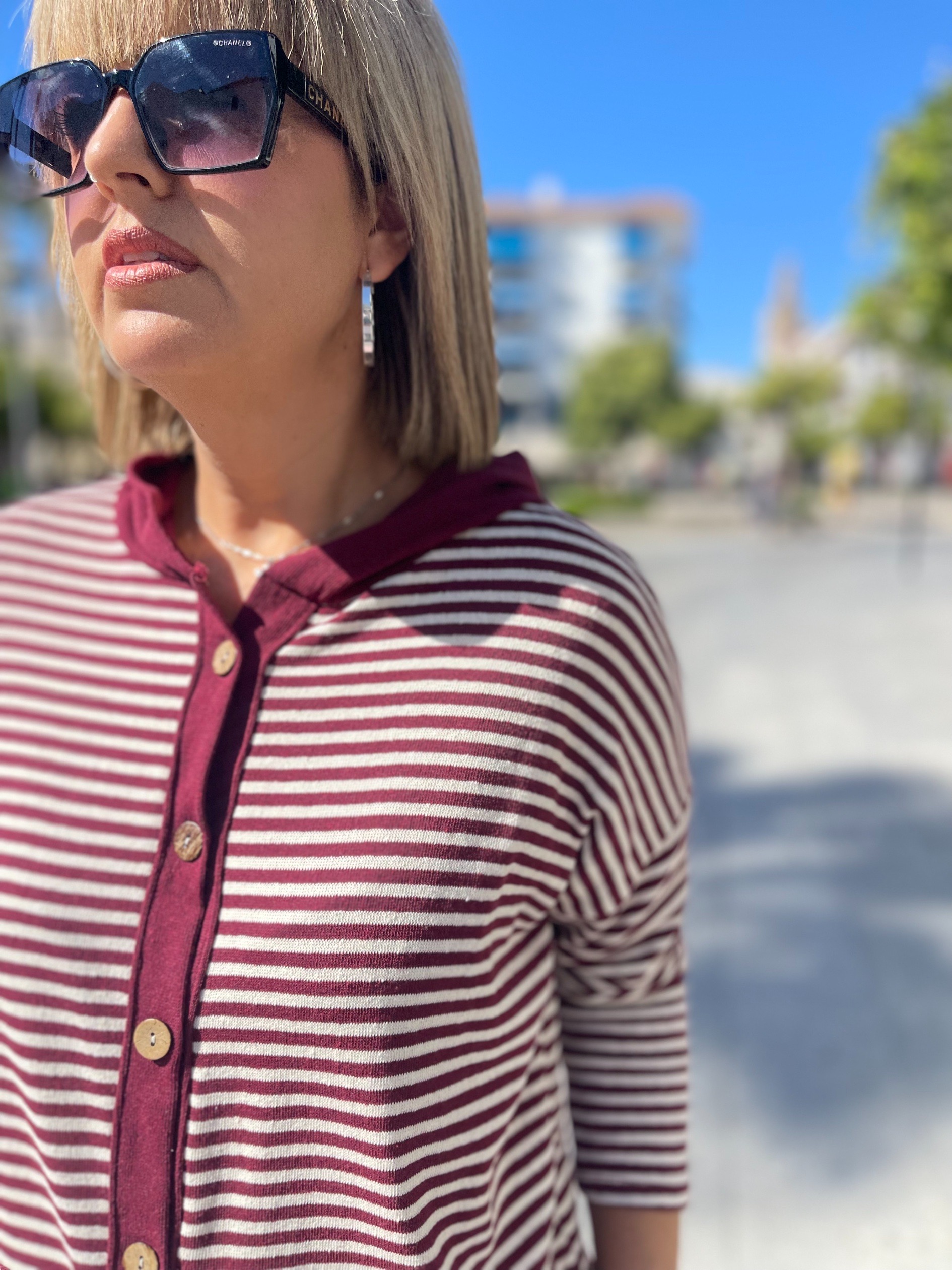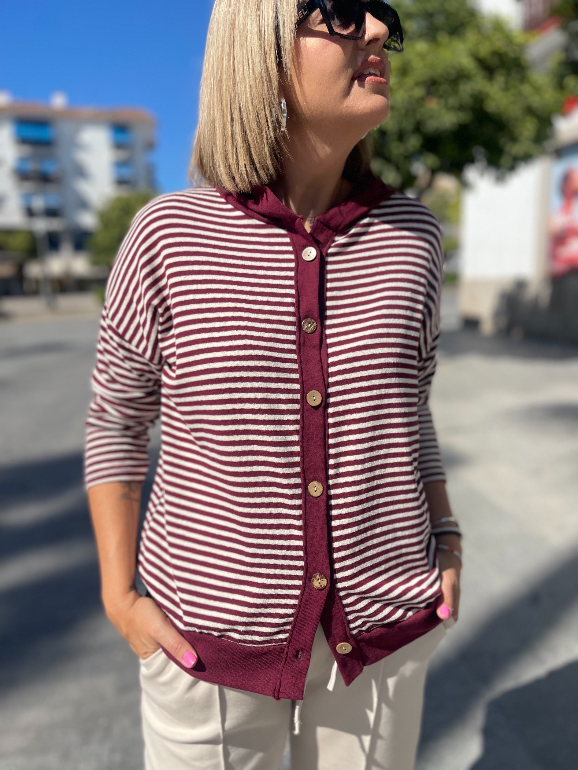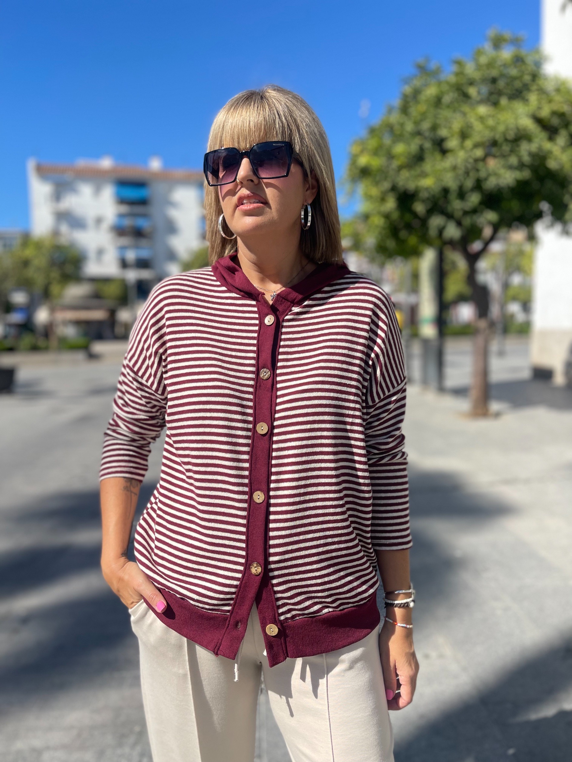Sé el primero en valorar “Jersey abotonado rayas burdeos.”