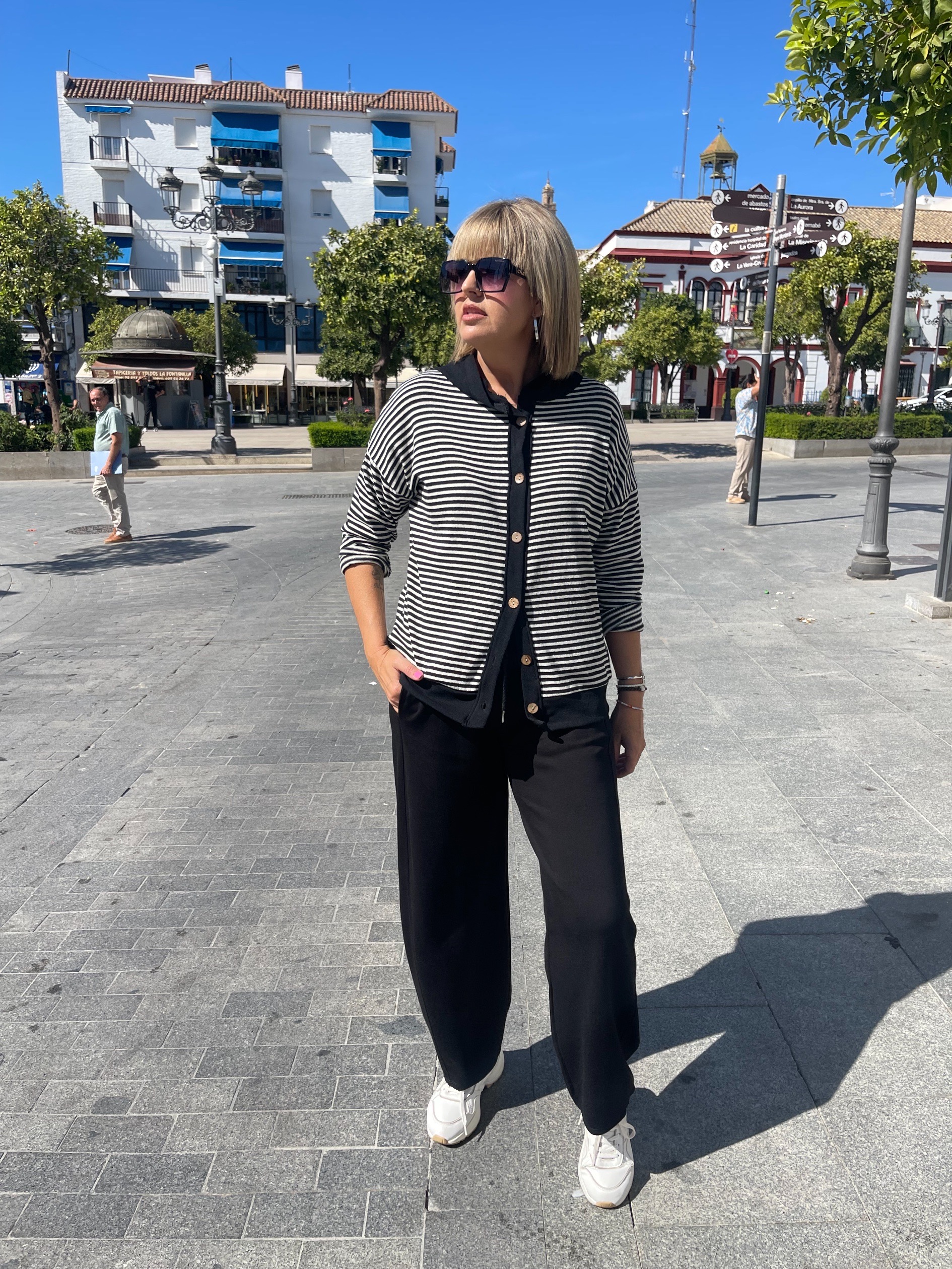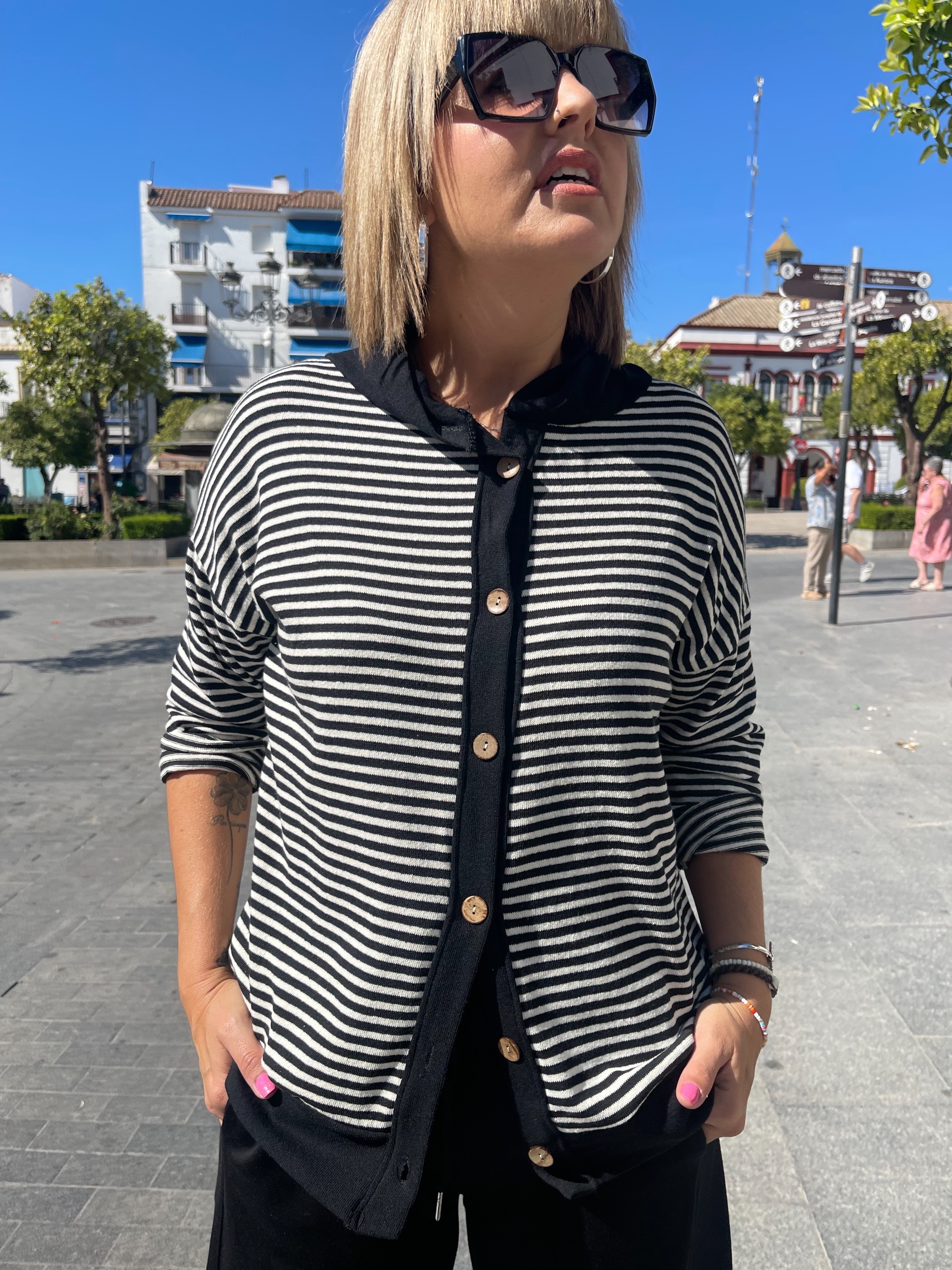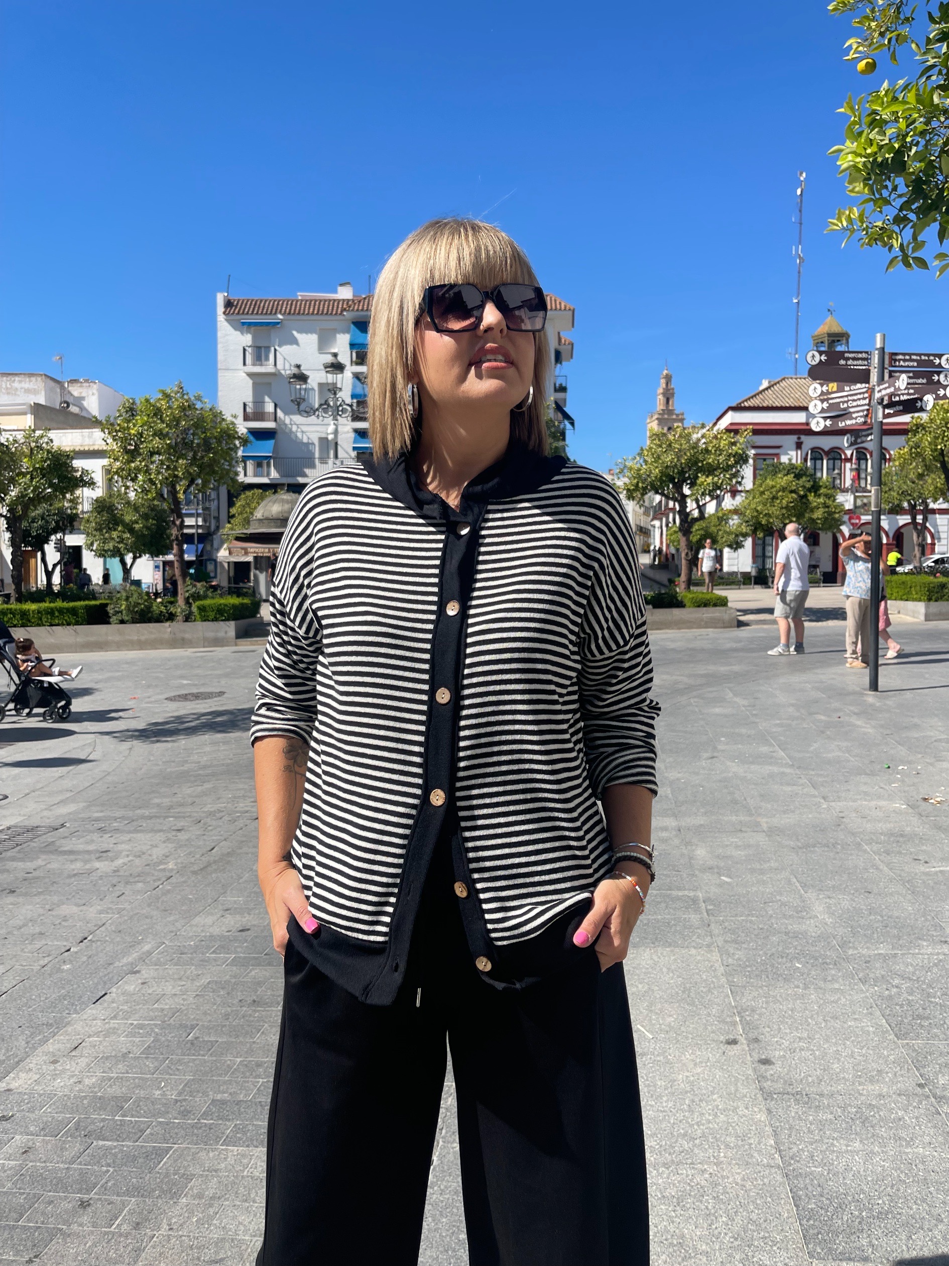 Jersey abotonado en tejido de hilo fino. Sin duda es una prenda súper original y que podrás combinar tanto con pantalón sport como lleva nuestra compañera Sandra en la foto o unos jeans incluso unos pantalones más de vestir.En talla única pero adaptable a muchas tallas (116 ctms de contorno).
