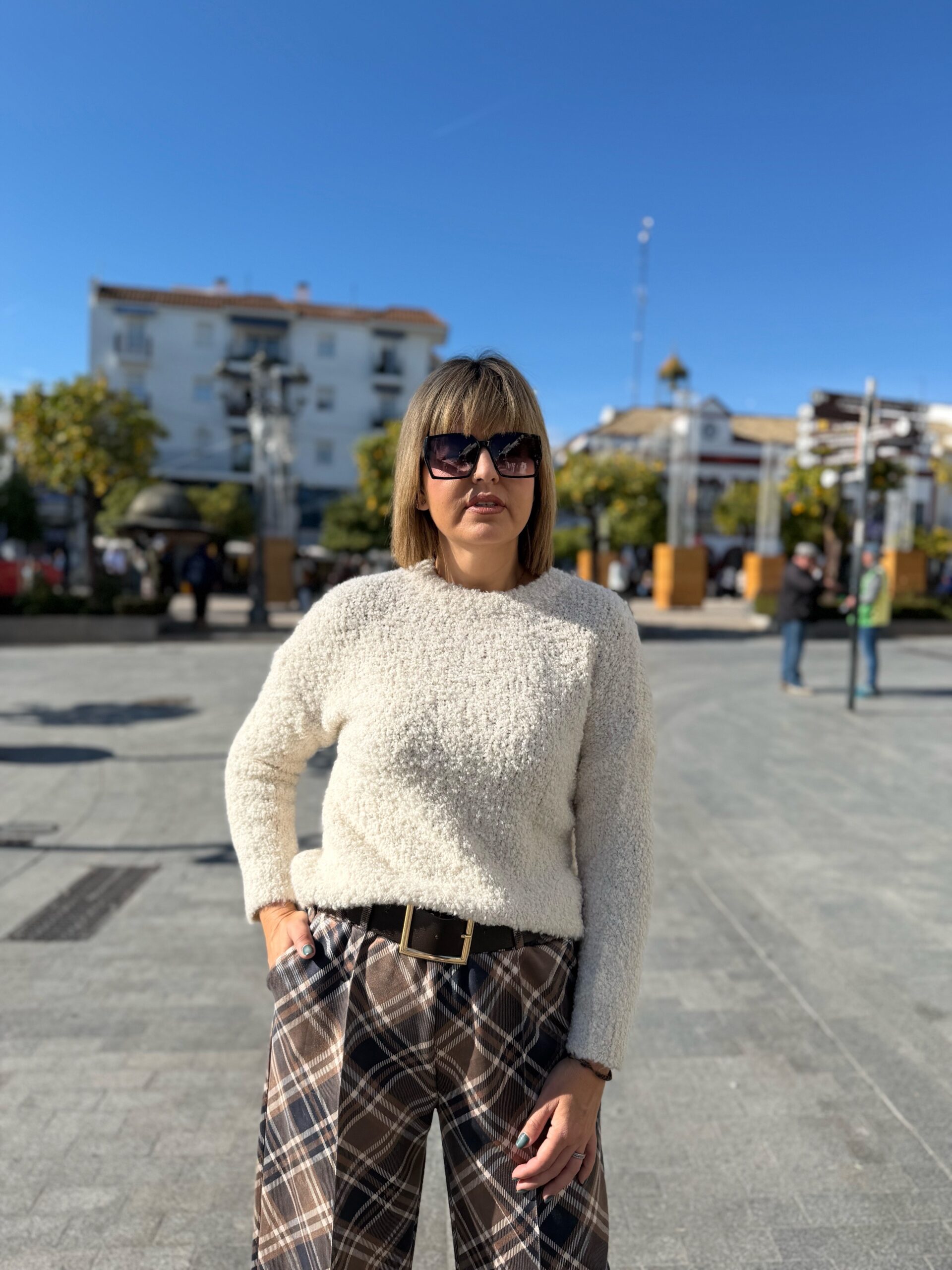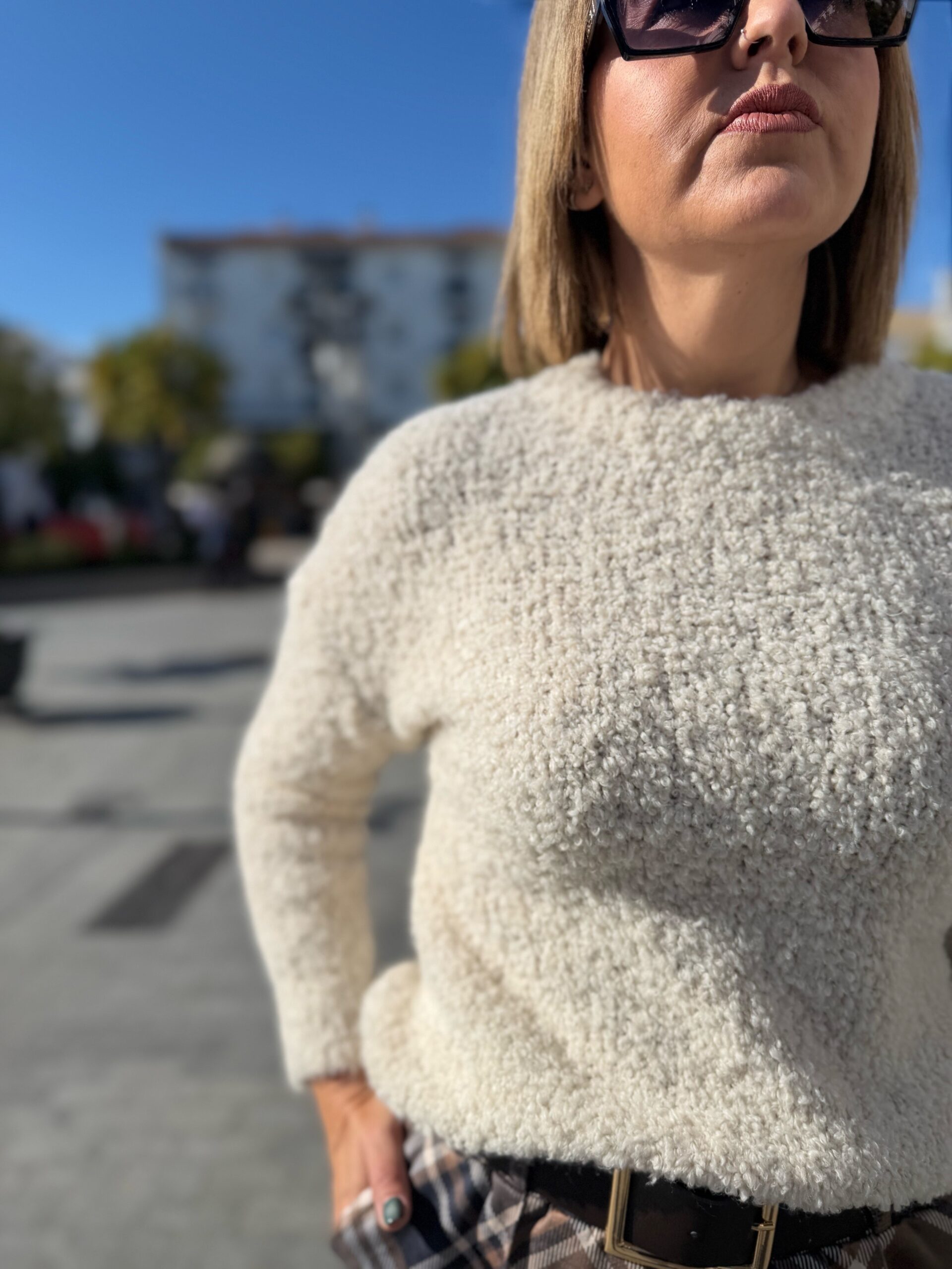Jersey en tejido similar a borreguito aunque es lana jiji…. Super abrigado y súper cómodo. Ideal para cualquier tipo de outfit, tanto más arreglado como para el dia a dia. Vayas donde vayas irás vestida muy original y abrigada jiji…