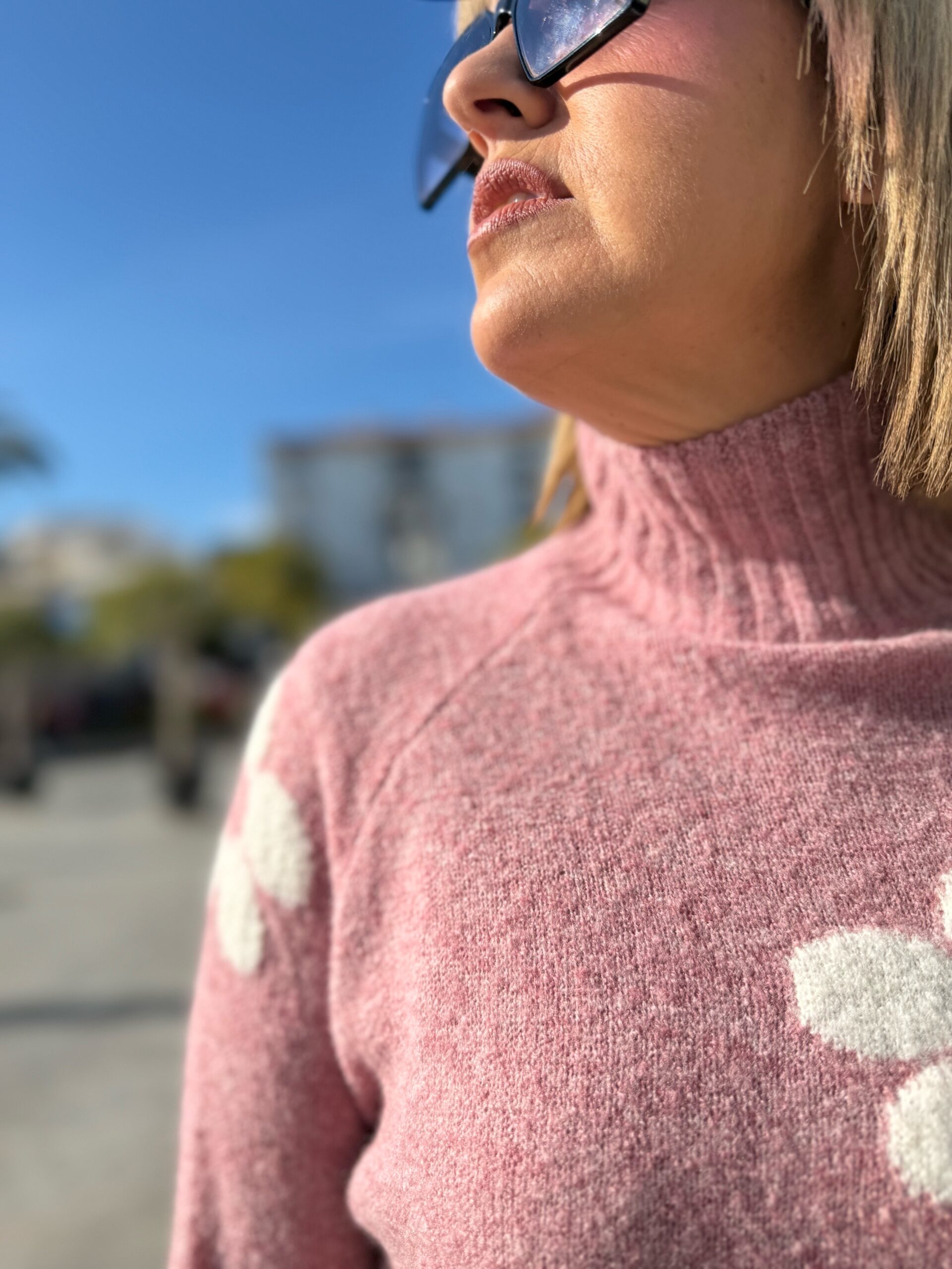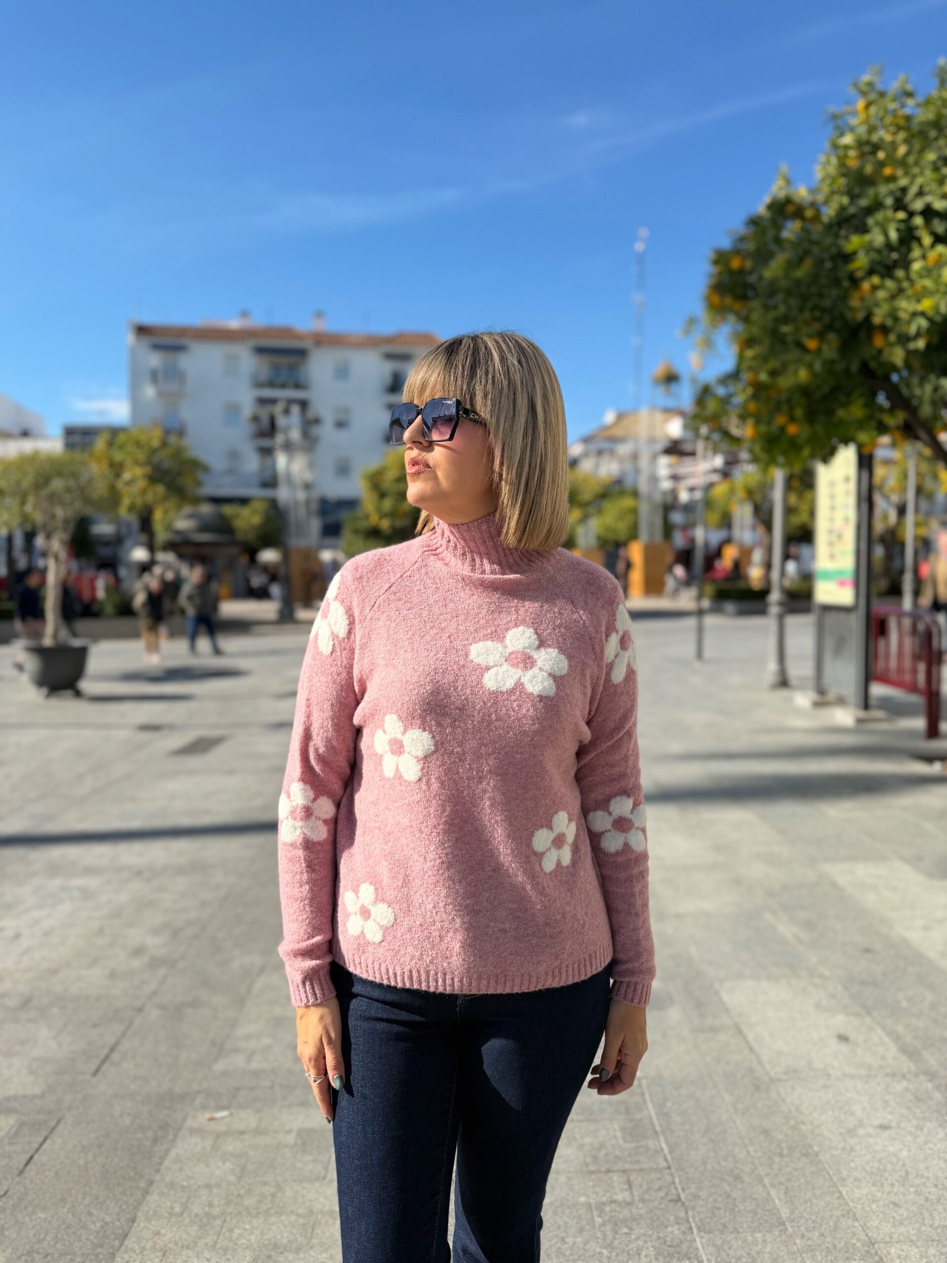 Jersey de lana muy suave y abrigado con detalle de cuello perkins. Muy combinable y cómodo. En talla única (116 ctms de contorno) ajustable a muchas tallas.