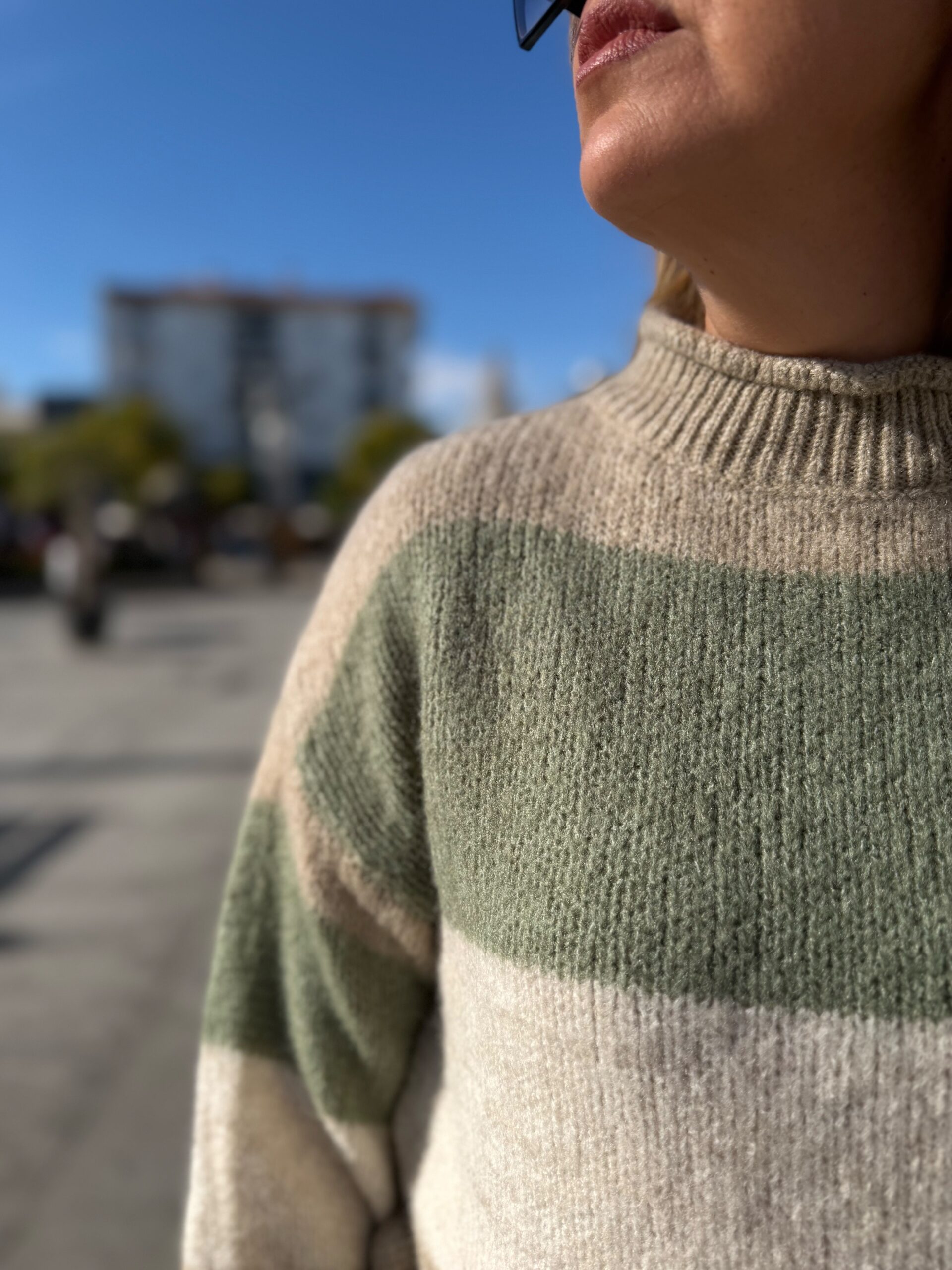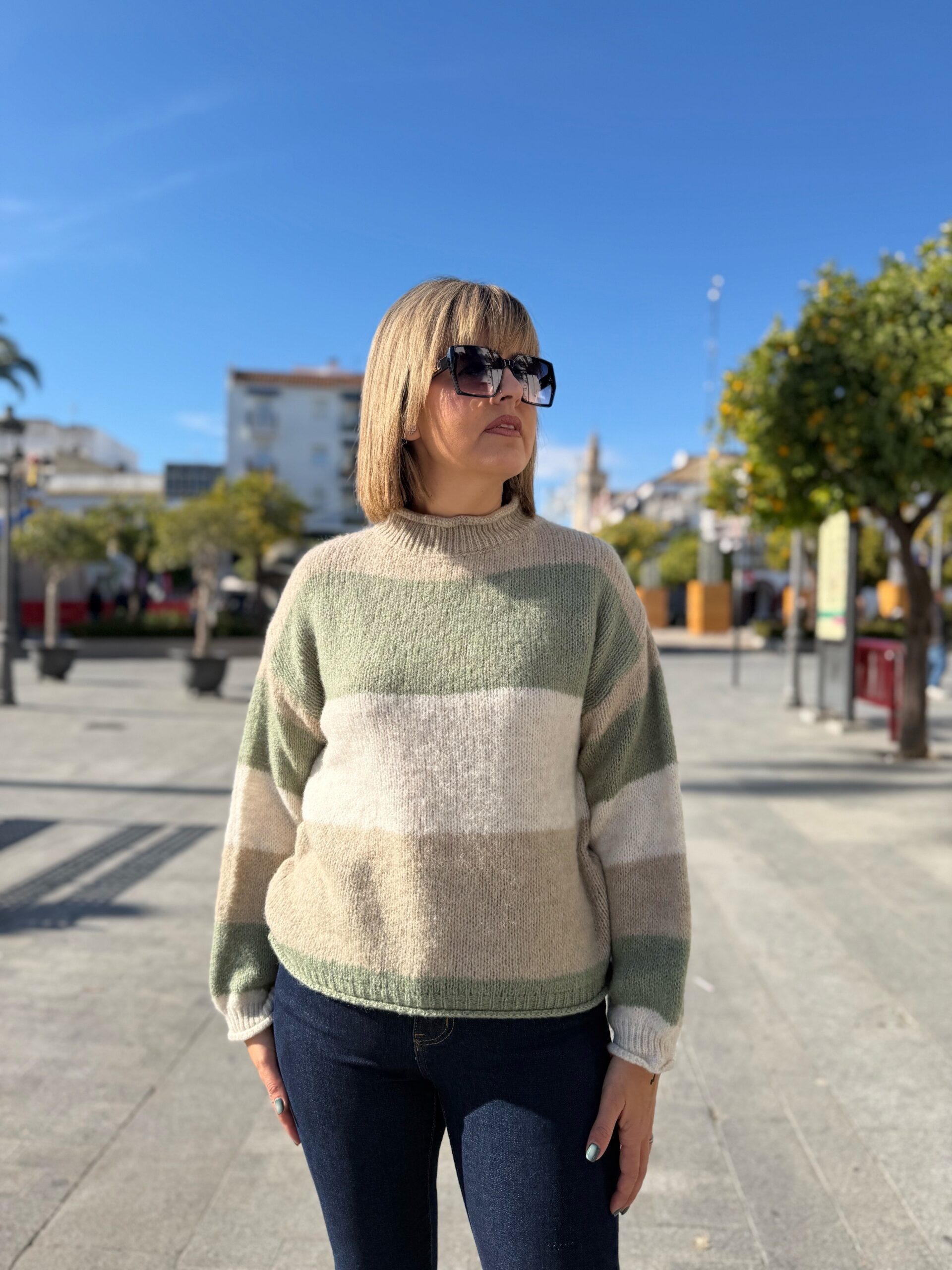 Sé el primero en valorar “Jersey franjas verde-blanco-beige.”