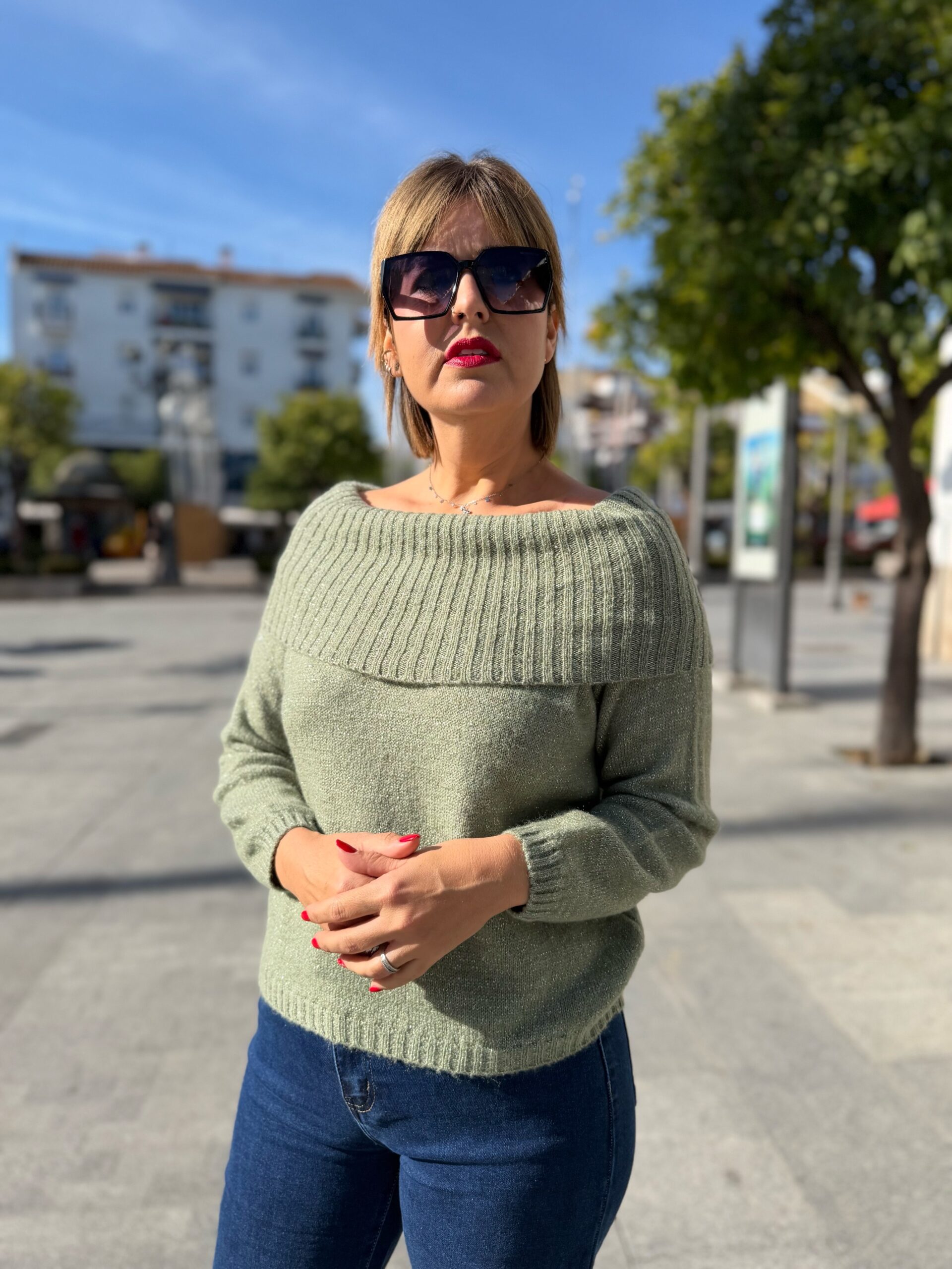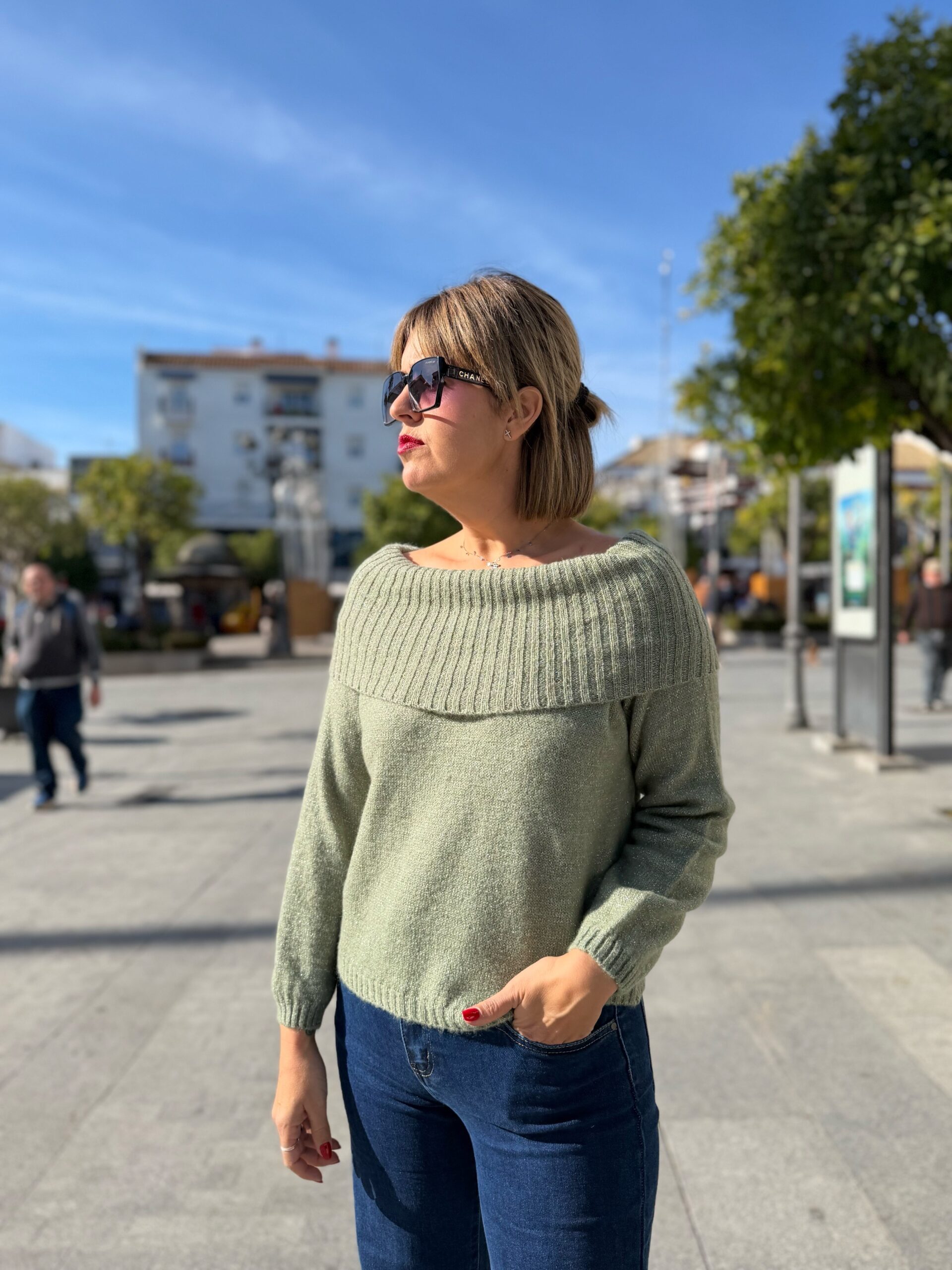 Jersey en tejido de lana muy suave a la vez que abrigado con detalle de hombro caído aunque también puedes llevarlo normal. Muy original y que podrás combinar tanto con pantalones como con falda. En talla única que se adapta a tallas desde 38 a 42.