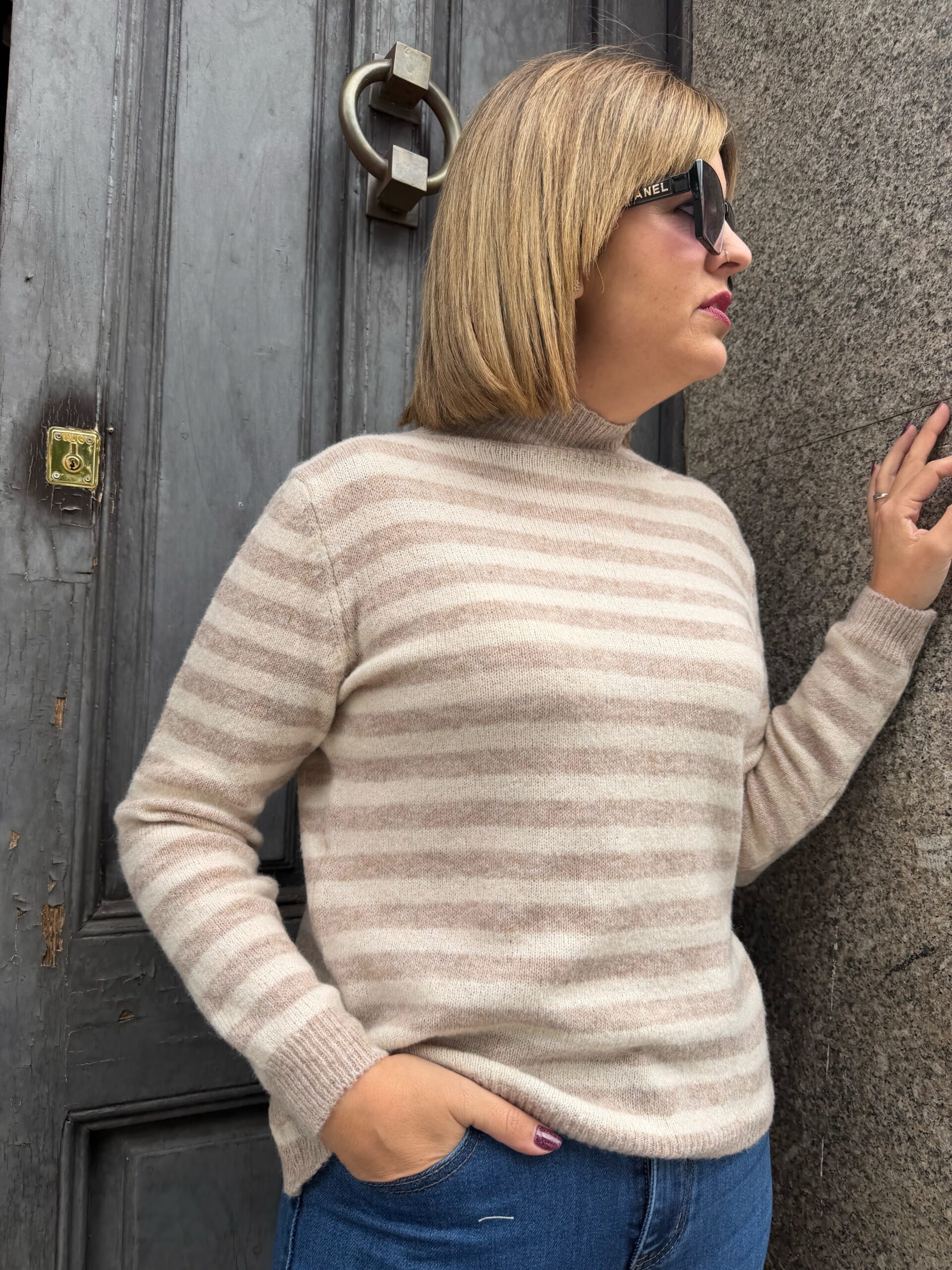 Jersey en tejido de lana de gran calidad, con cuello perkins muy comodo. Súper combinable y ponible prácticamente con todo. En talla única que se adapta a tallas de entre 38 a 42.