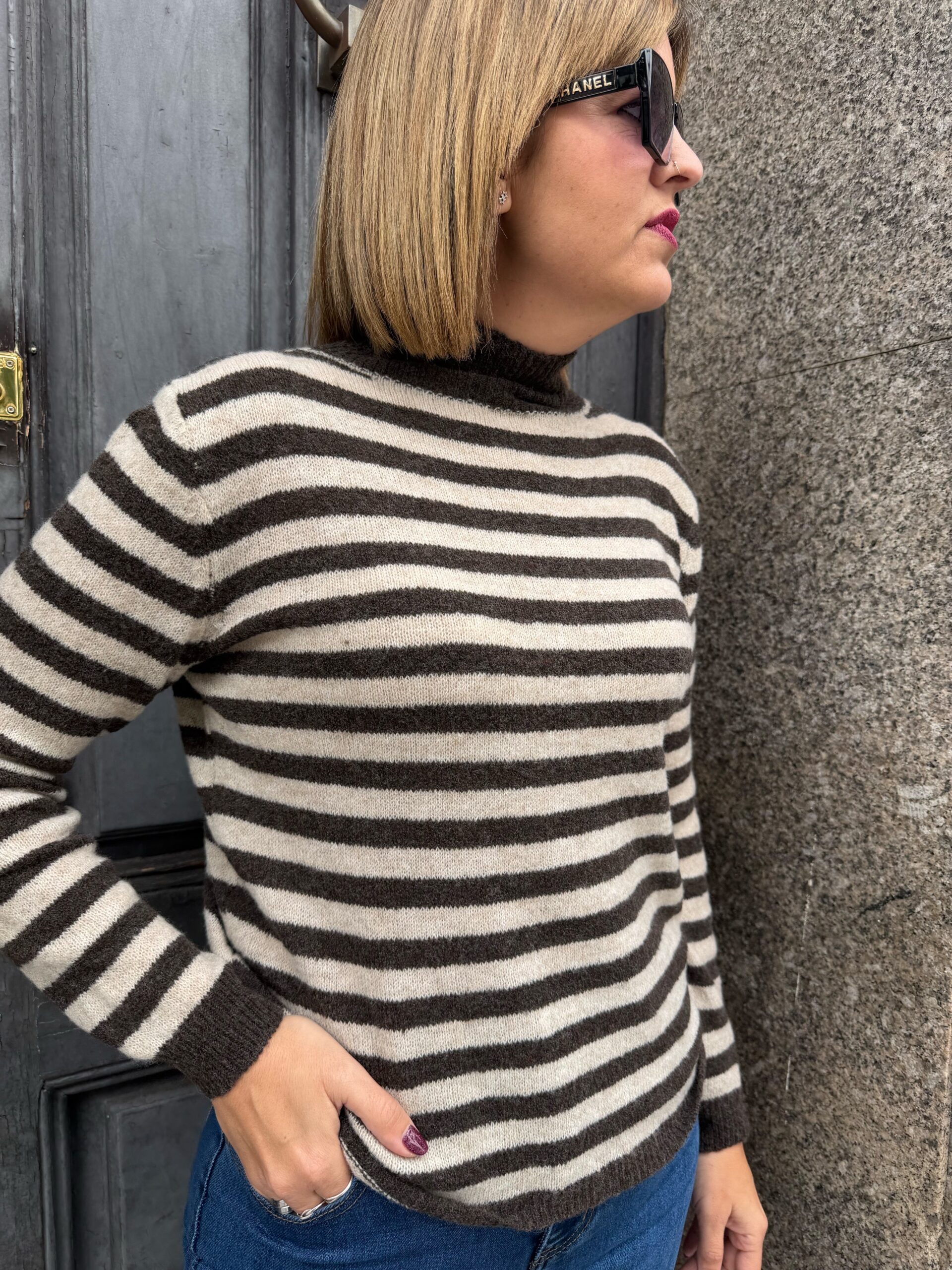 Jersey en tejido de lana de gran calidad, con cuello perkins muy comodo. Súper combinable y ponible prácticamente con todo. En talla única que se adapta a tallas de entre 38 a 42.