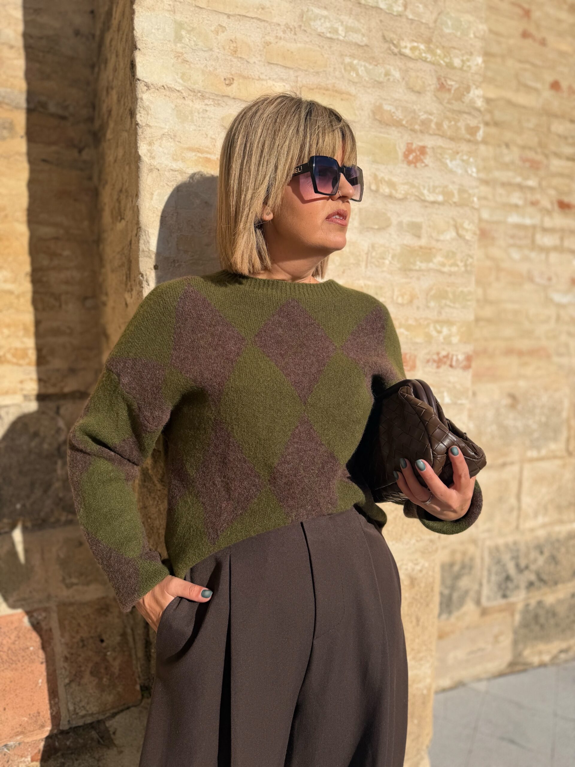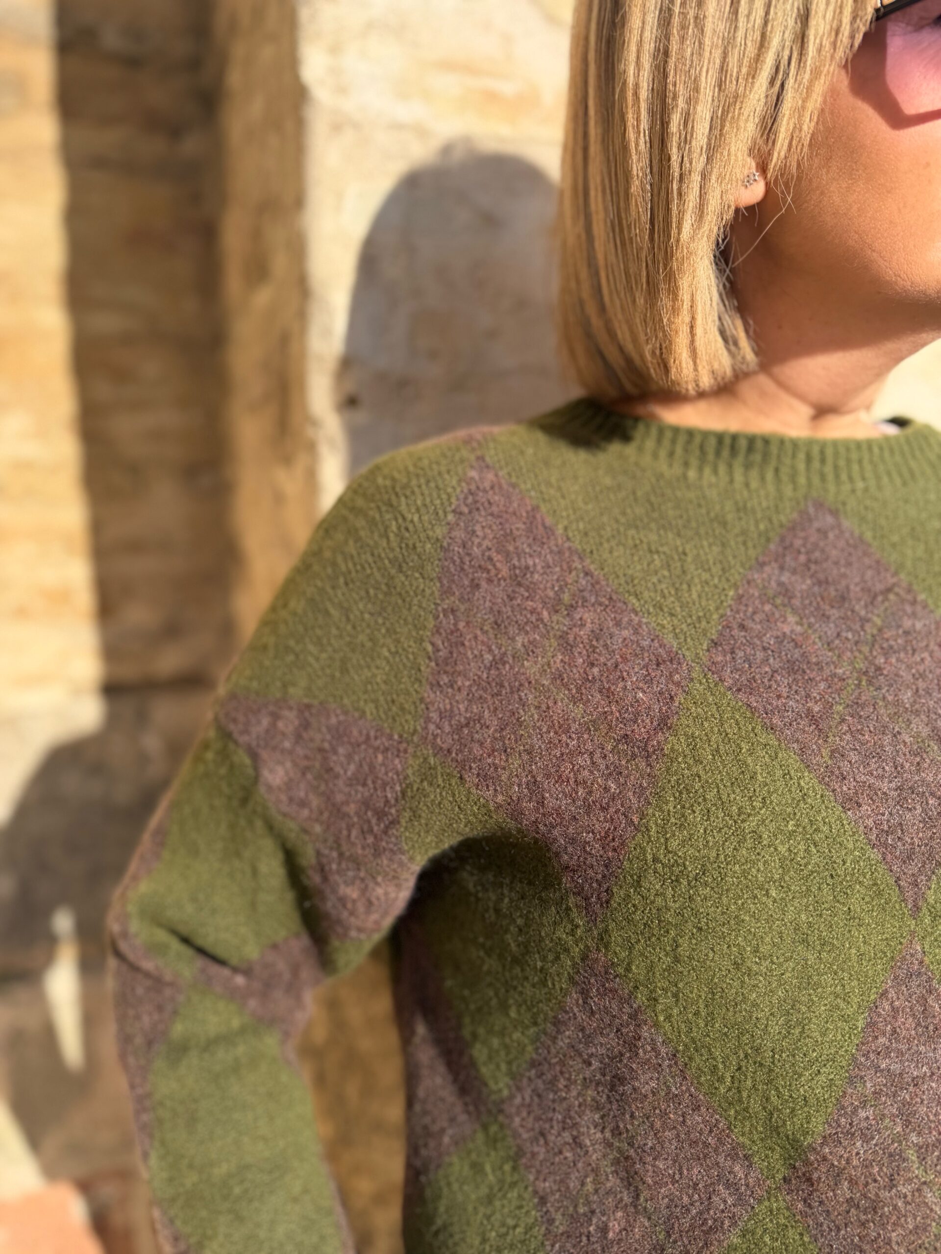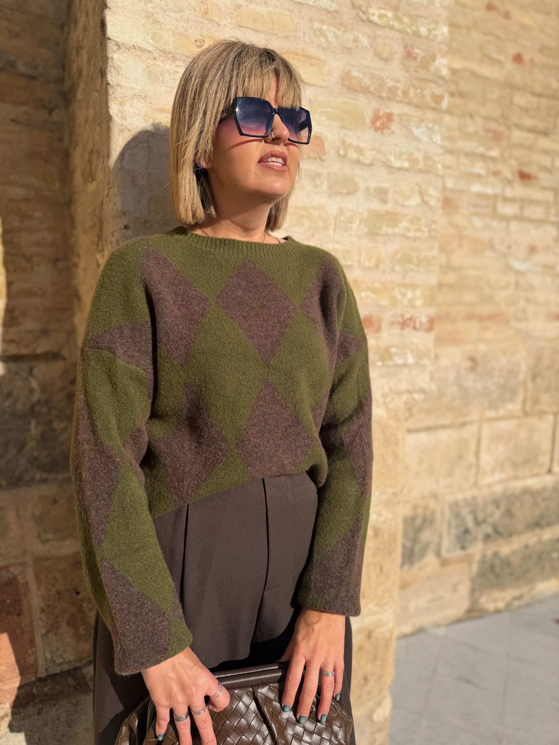 Jersey con detalle de rombos que tan de moda están y que le dan un toque diferente a la mayoría. En tejido de lana de gran calidad, muy suave y cómodo. En talla única pero que abarca tallas desde 38 a 42 perfectamente.