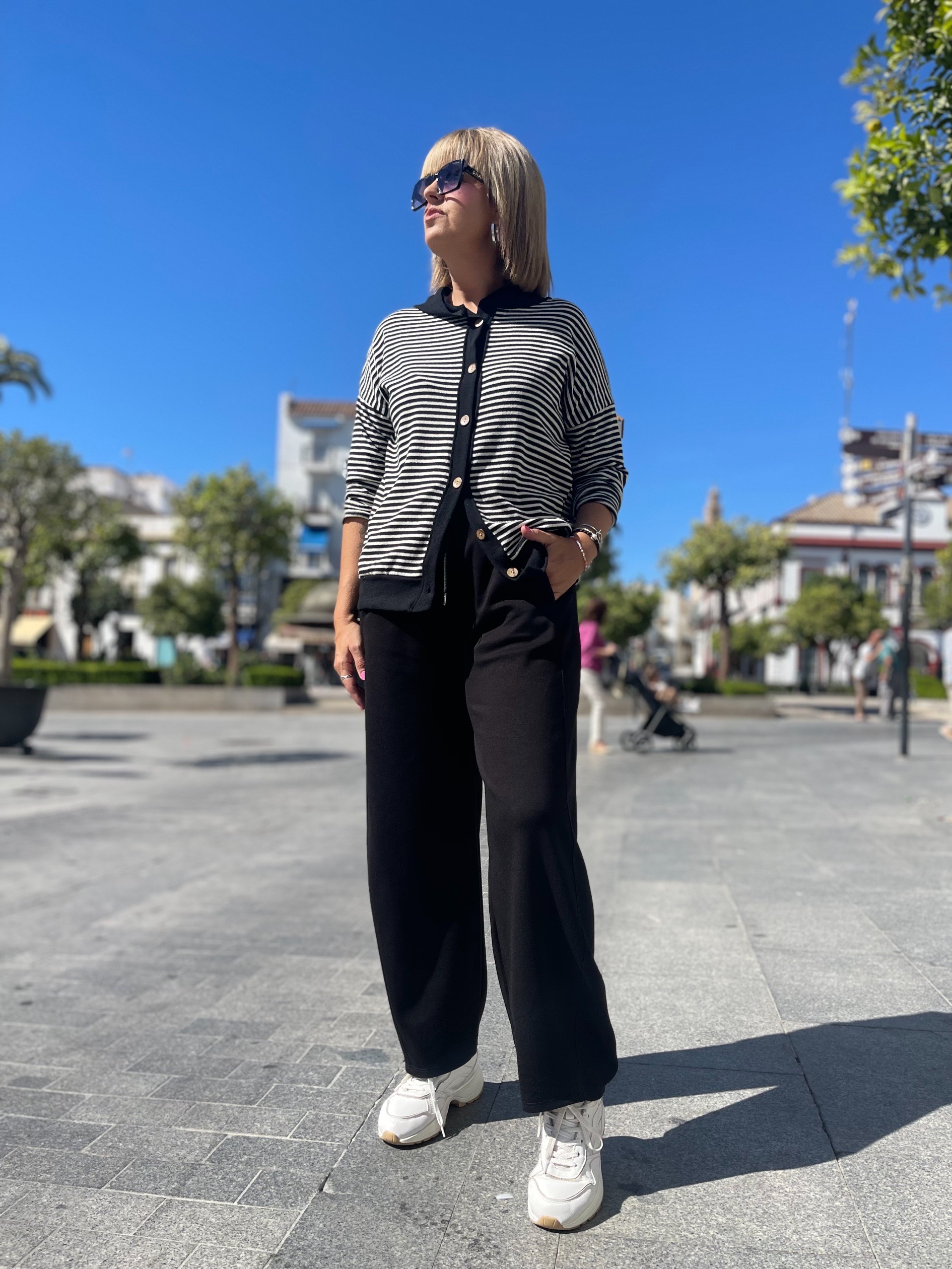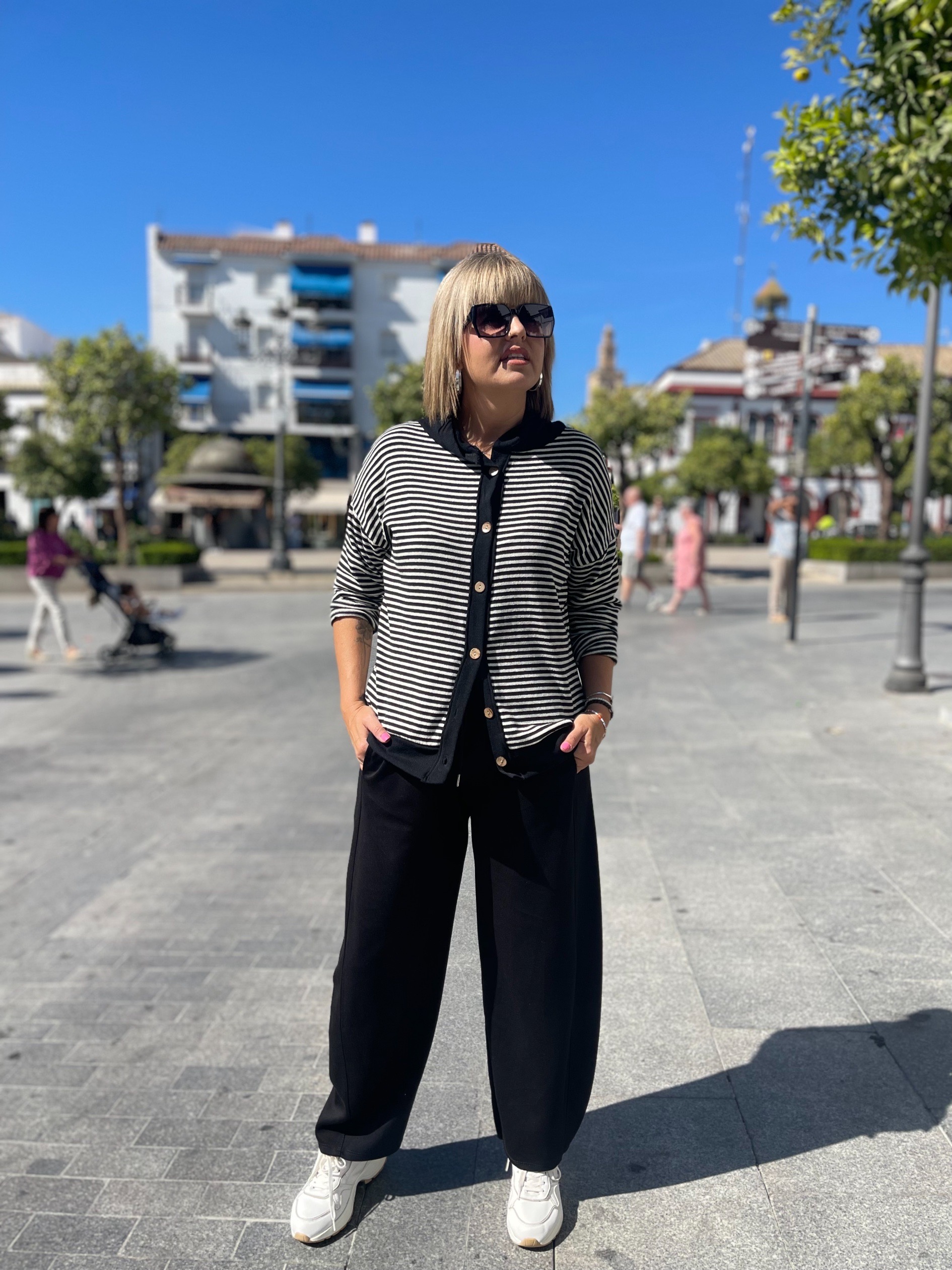 Pantalón en tejido de moda de capa de aire que tan comodísimo es y no necesita plancharse jiji… normal9 que estè de moda. Con una caída espectacular, cinturilla elástica y bolsillos, un corte súper urbano que tanto se lleva, es en pantalón top que queerás llevar para todo. En talla única pero que se adapta a tallas desde 38 a 44.