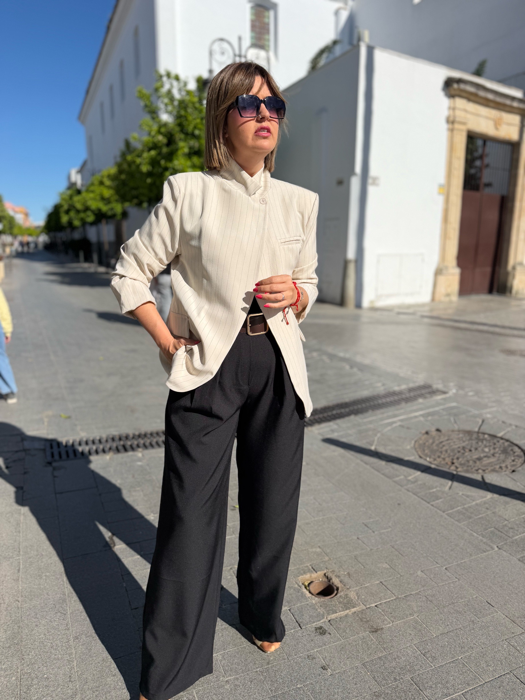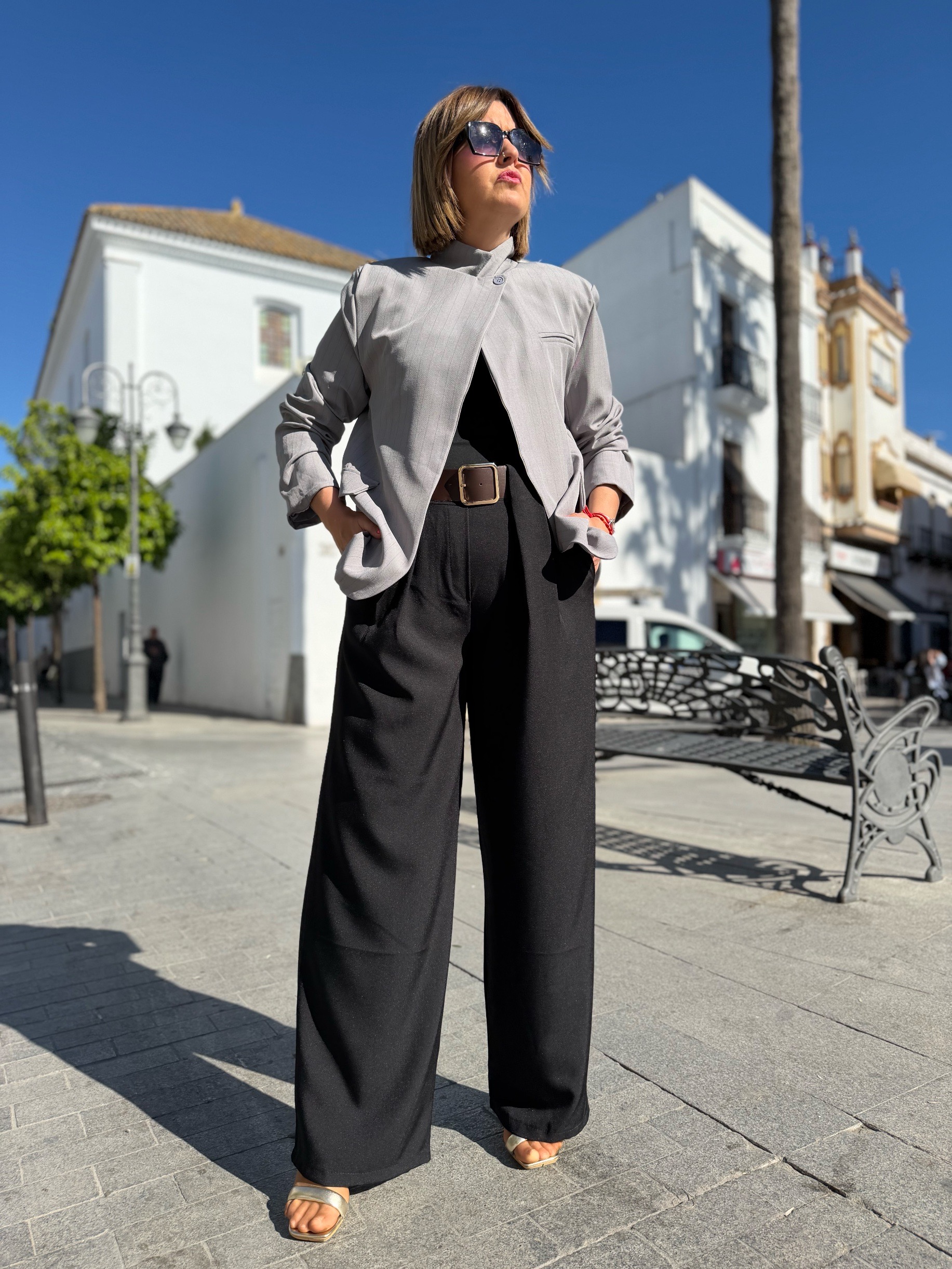 Pantalón recto en tejido con licra y detalle de pinzas que estilizan muchísimo y lo hacen aún más de vestir. Con cinturón incluido y cinturilla elástica, hacen que aun siendo talla única pero se adapten perfectamente a tallas de entre 38 a 44.