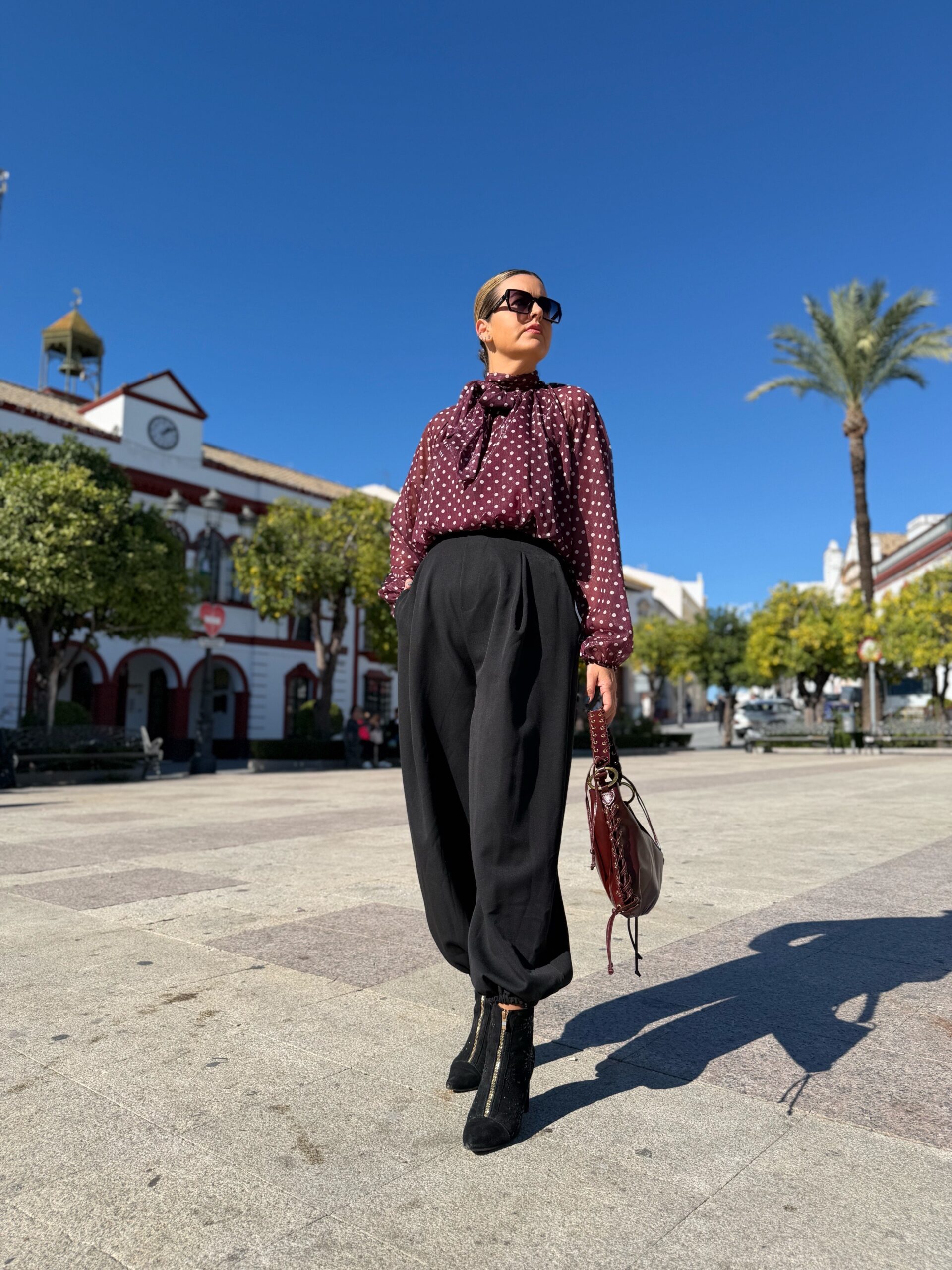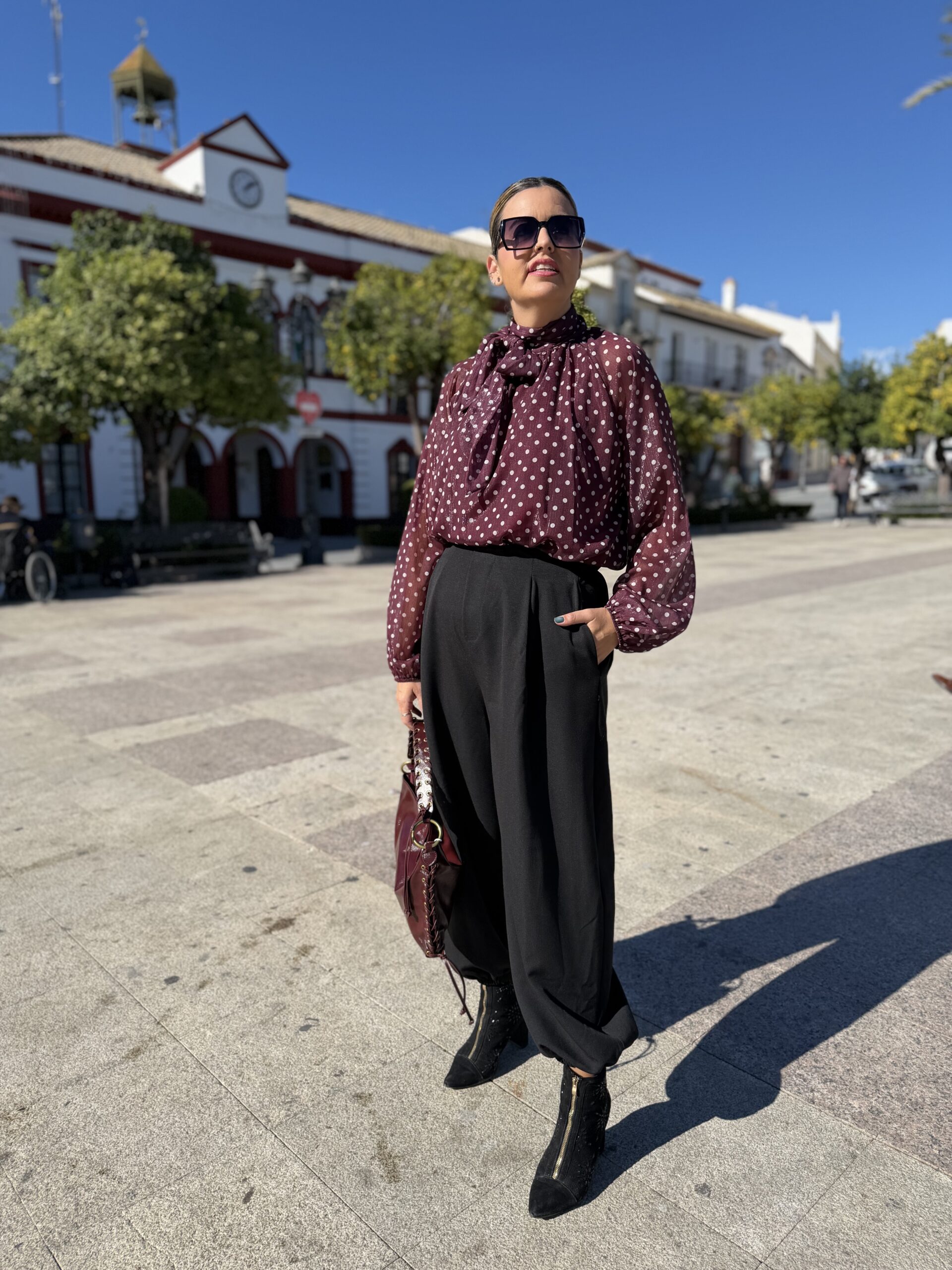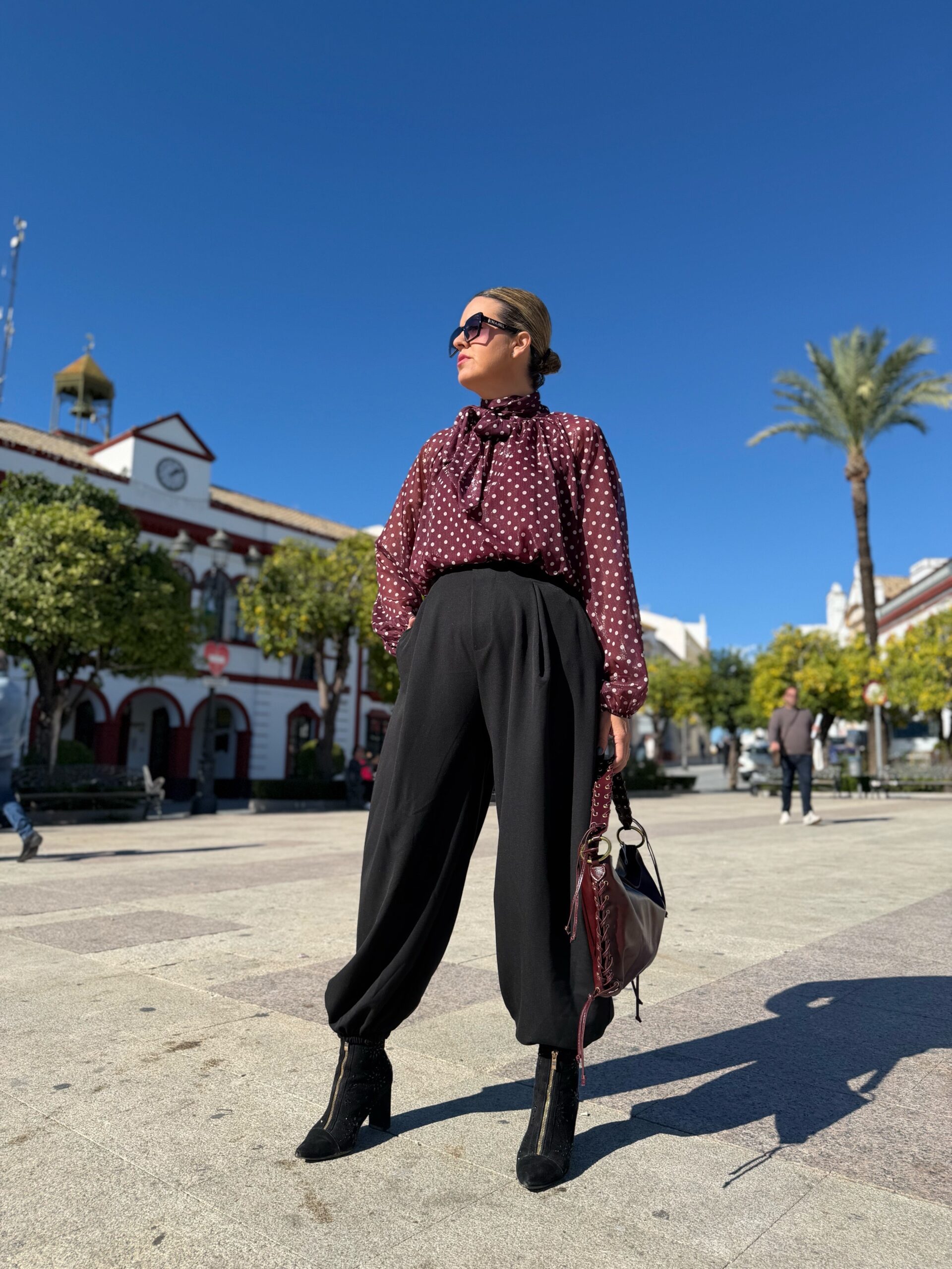 Pantalón bombacho en tejido de vestir de gran calidad, de cinturilla elástica en parte trasera que hace que se adapte súper bien a todas las figuras, con bolsillos y un corte súper favorecedor a la vez que cómodo. Sin duda el pantalón más viral. Ideal para llevarlo prácticamente con todo. Botín de tacón de aguja y top o camisa de vestir o incluso unas sneakers y sudadera. Hazte con tu pantalón bombacho y móntate tu propio outfit para triunfar en estos días de cenas, almuerzos y fiestas que ya están aquí.