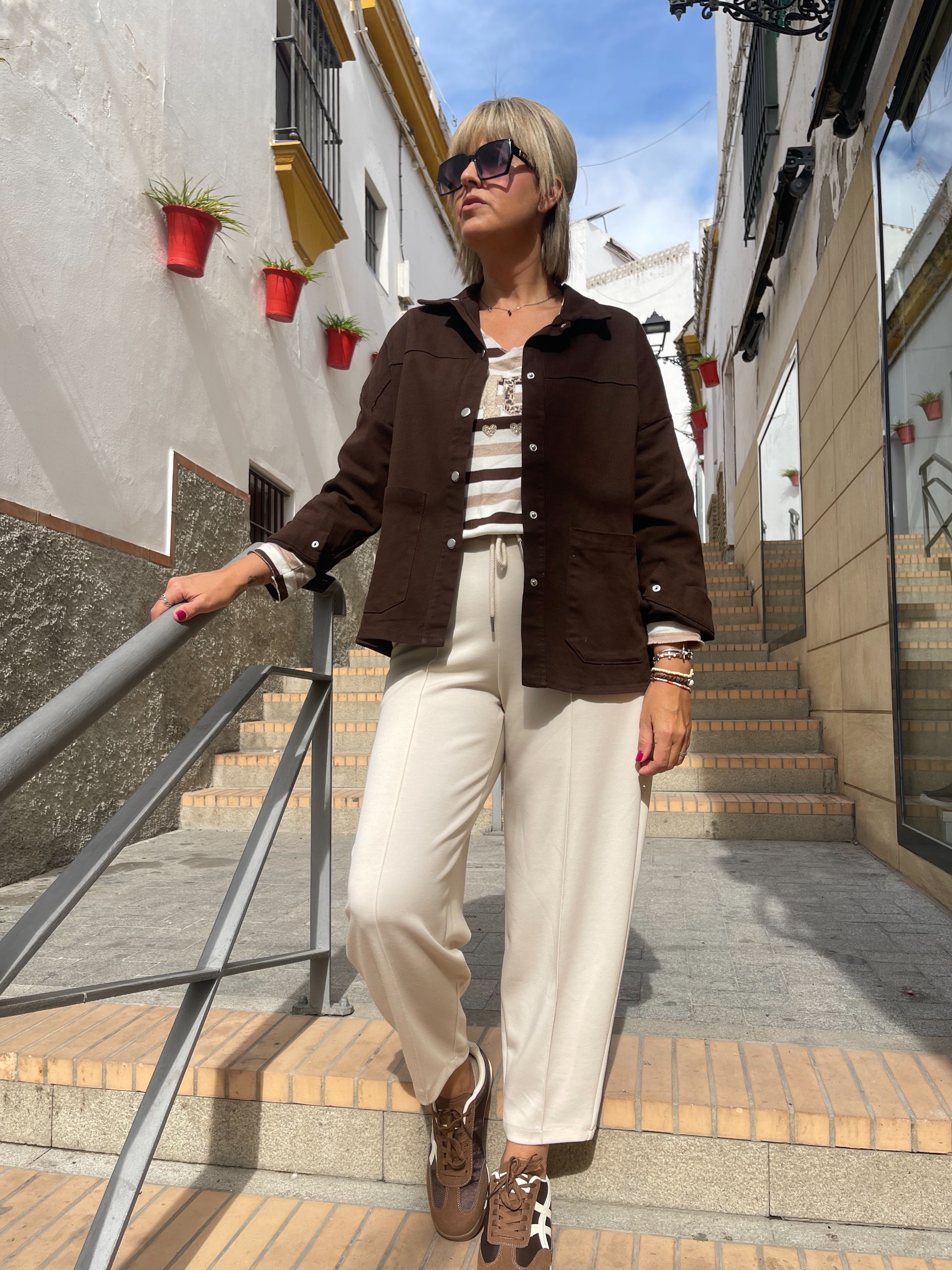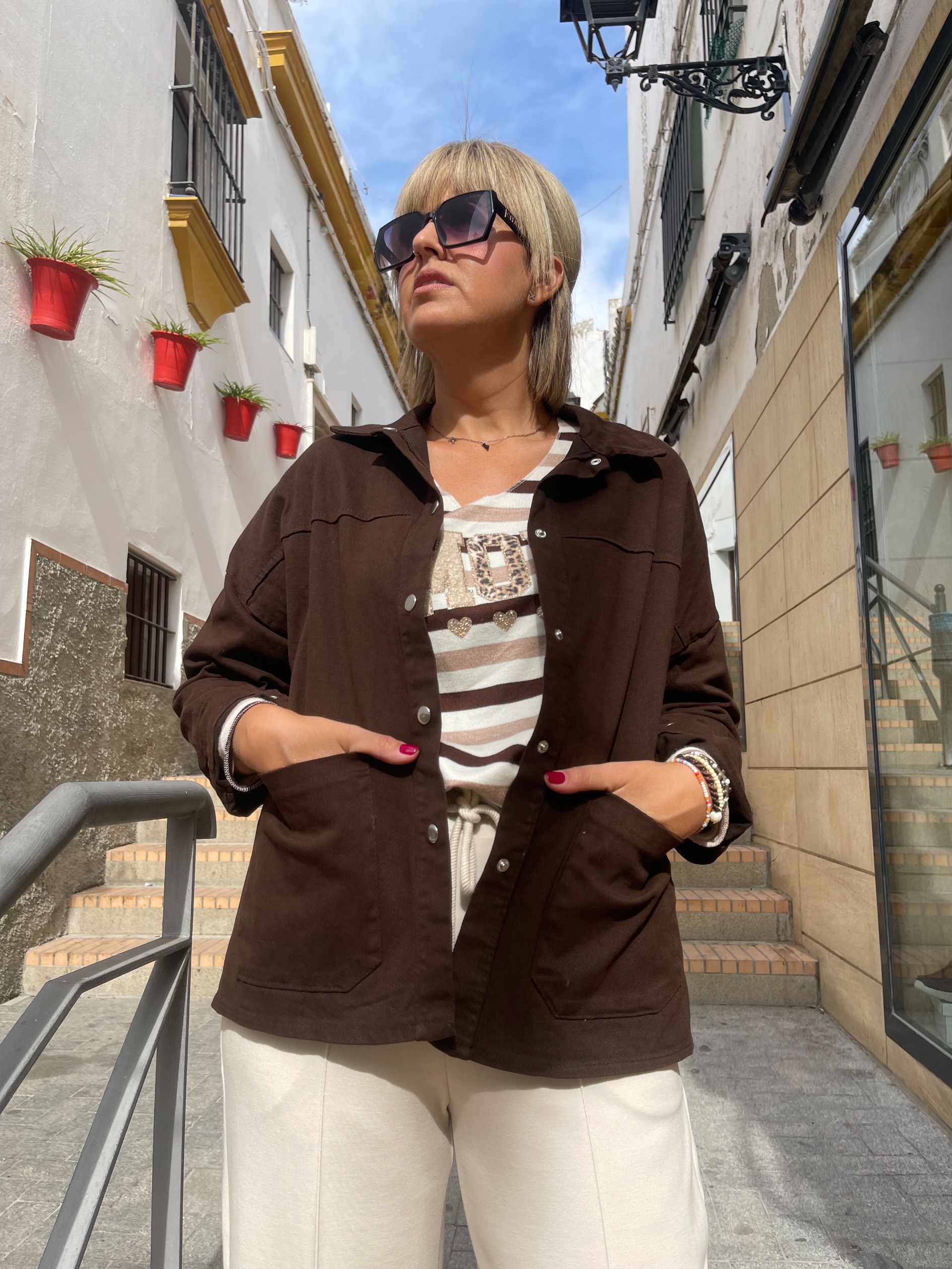 Sobrecamisa en tejido denim con bolsillos y cierre de Click. En talla única pero con ese rollito oversize que tanto se lleva ( 120 ctms de contorno cerrada). Ideal para completar un outfit casual a la vez que cómodo y con estilo. Sin duda una de estas no puede faltar en tu armario ya que te salvará ese día que no sabes que echarte por encima para ir un poco más abrigada y con estilo jiji…