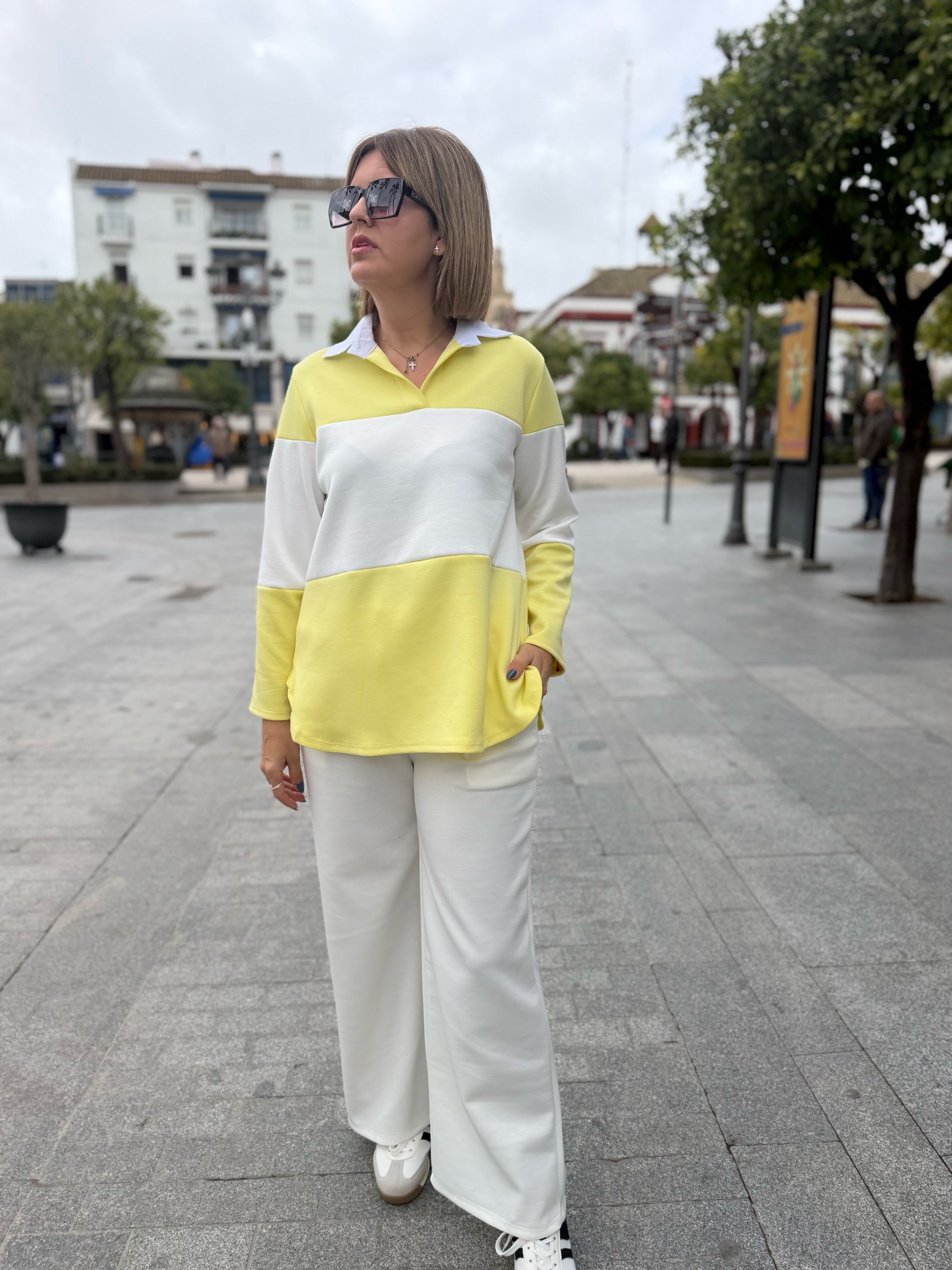 Sudadera en tejido de capa de aire, muy cómoda y confortable con detalle de cuello polo que tan de moda está. Súper combinable con todo y en colores top 🔝🔝. Talla única adaptable a muchísimas tallas (38-42, 128 ctms de contorno).