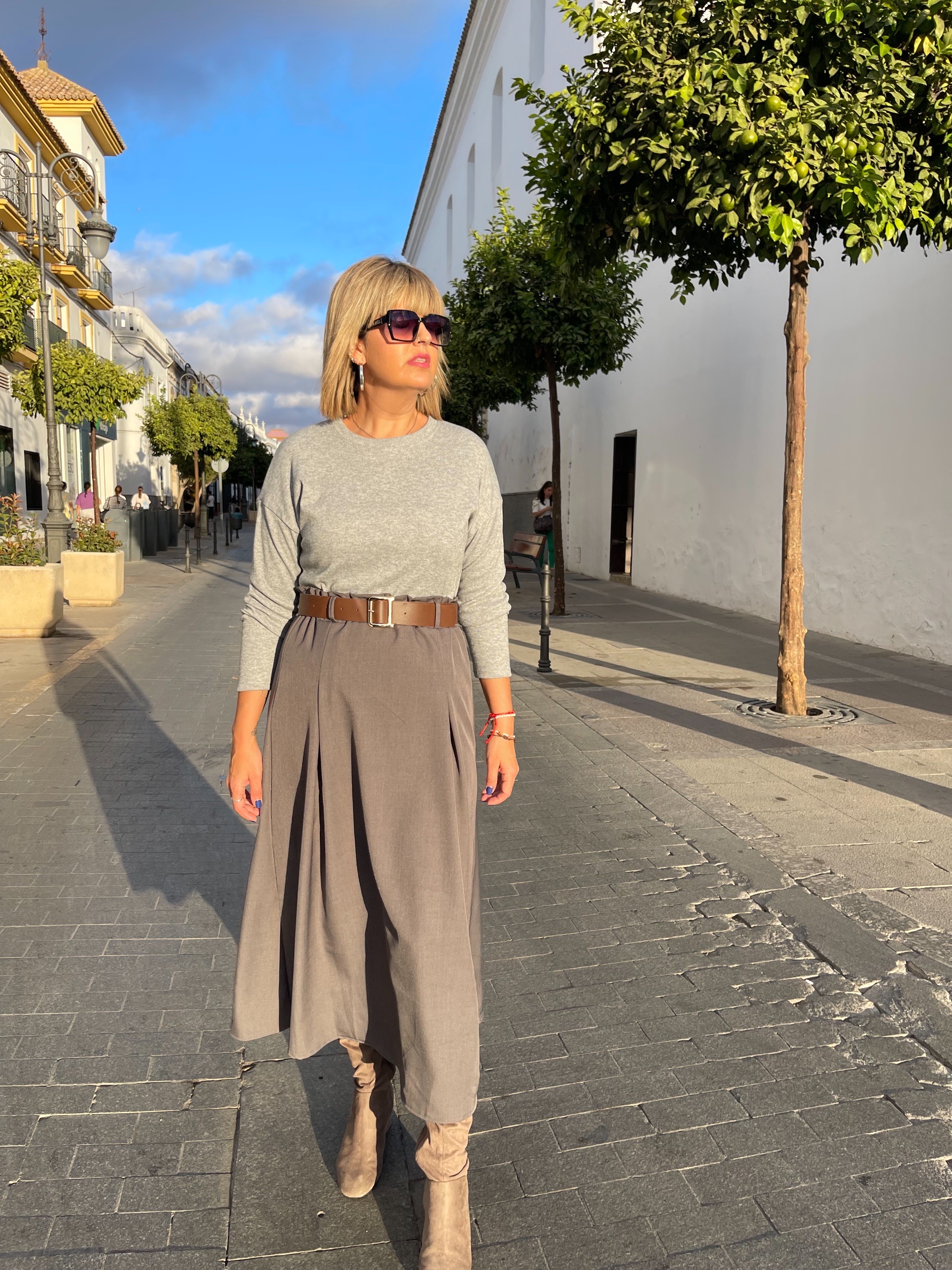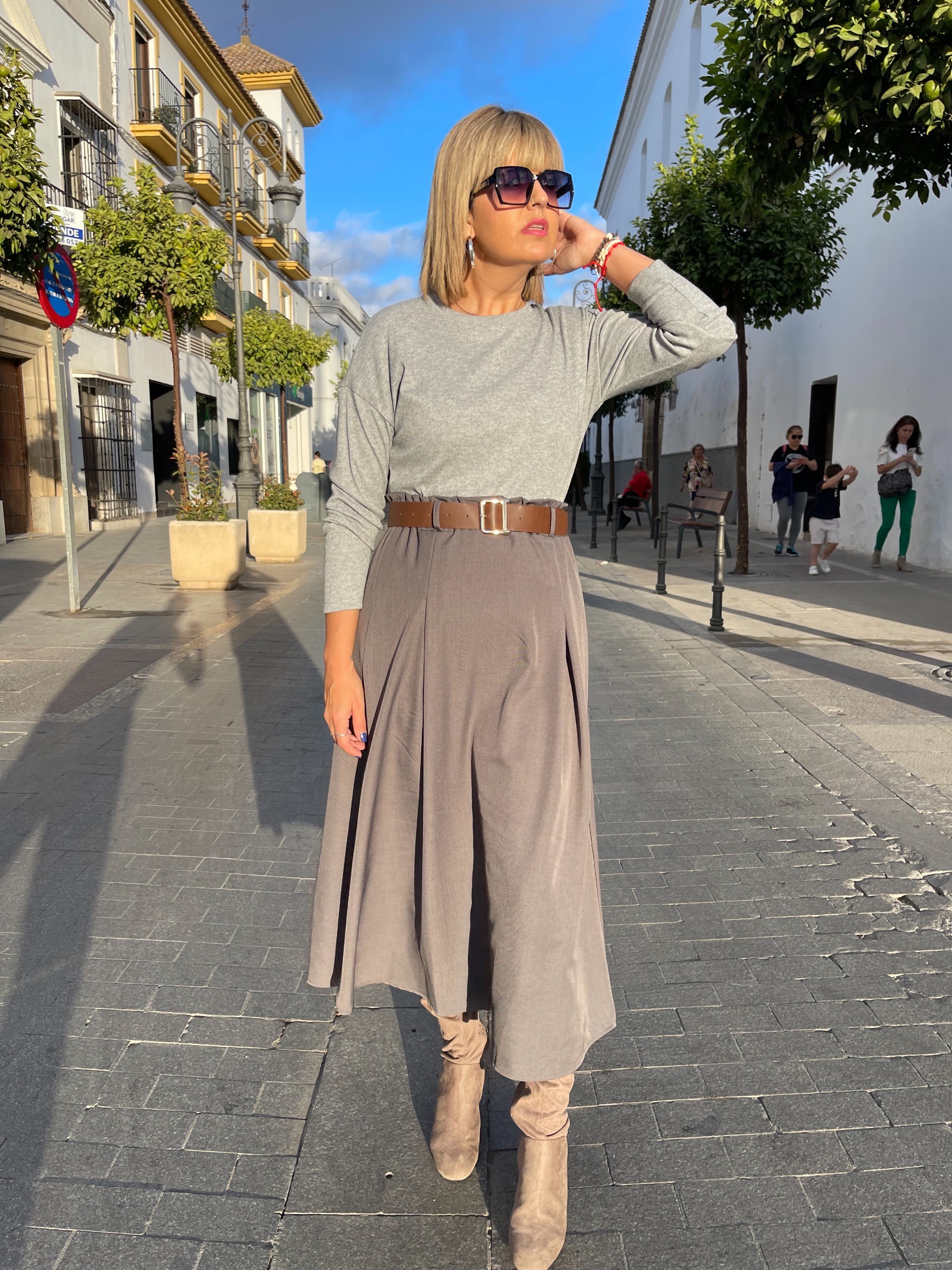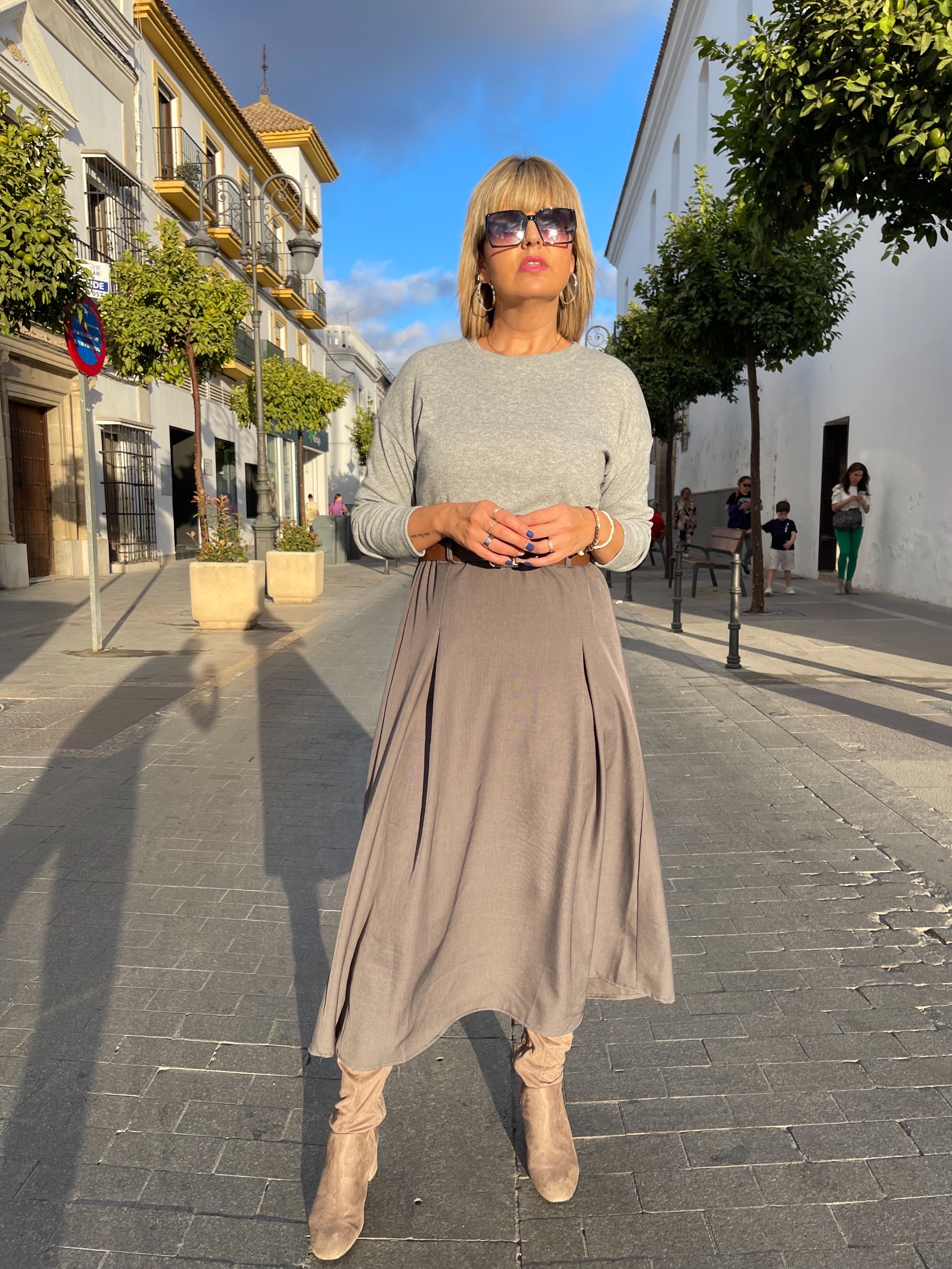 La combinación entre jersey de punto y falda en tejido más de vestir unidos hacen del vestido perfecto. Solo enguantarte en él y combinarlo con unos botines como lleva nuestra compañera Sandra o una deportivas y sin duda tendrás el outfit perfecto, para un día perfecto y sin esfuerzo ninguno. Un estilazo súper ponible para cualquier ocasión y que aunque viene en talla única pero que se adapta perfectamente a tallas de entre 38 y 44.