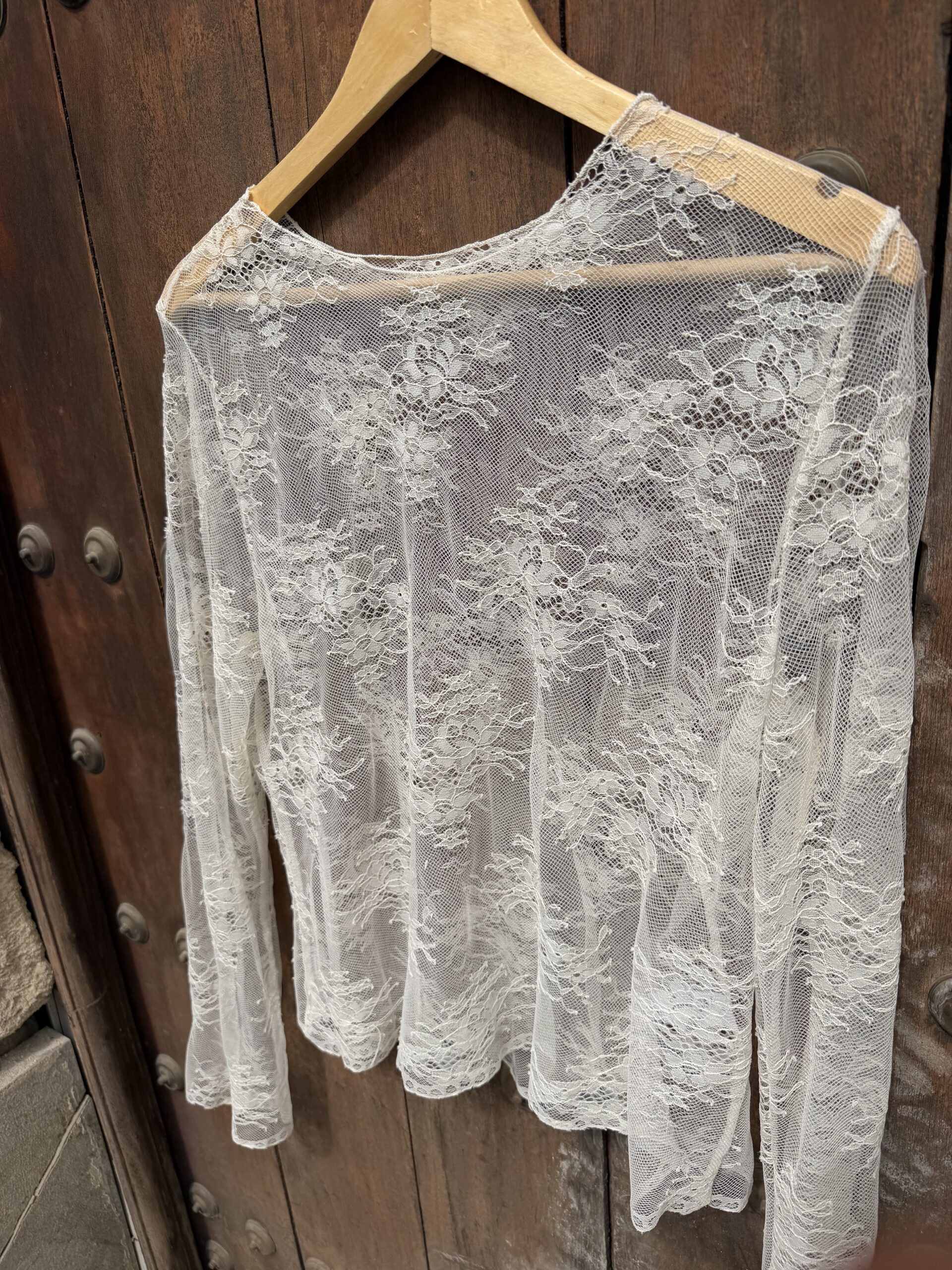 Top en tejido totalmente de encaje, ideal tanto para llevar solo con un pantalón de vestir o unos jeans y sobretodo para llevarlo debajo de cualquier conjunto, dándole un toque muy muy especial y estiloso. En talla única pero adaptable a muchas tallas (desde 38 a 42) 110 ctms de contorno. Te salvará mas de una vez que no quieras ir demasiado descubierta jiji….