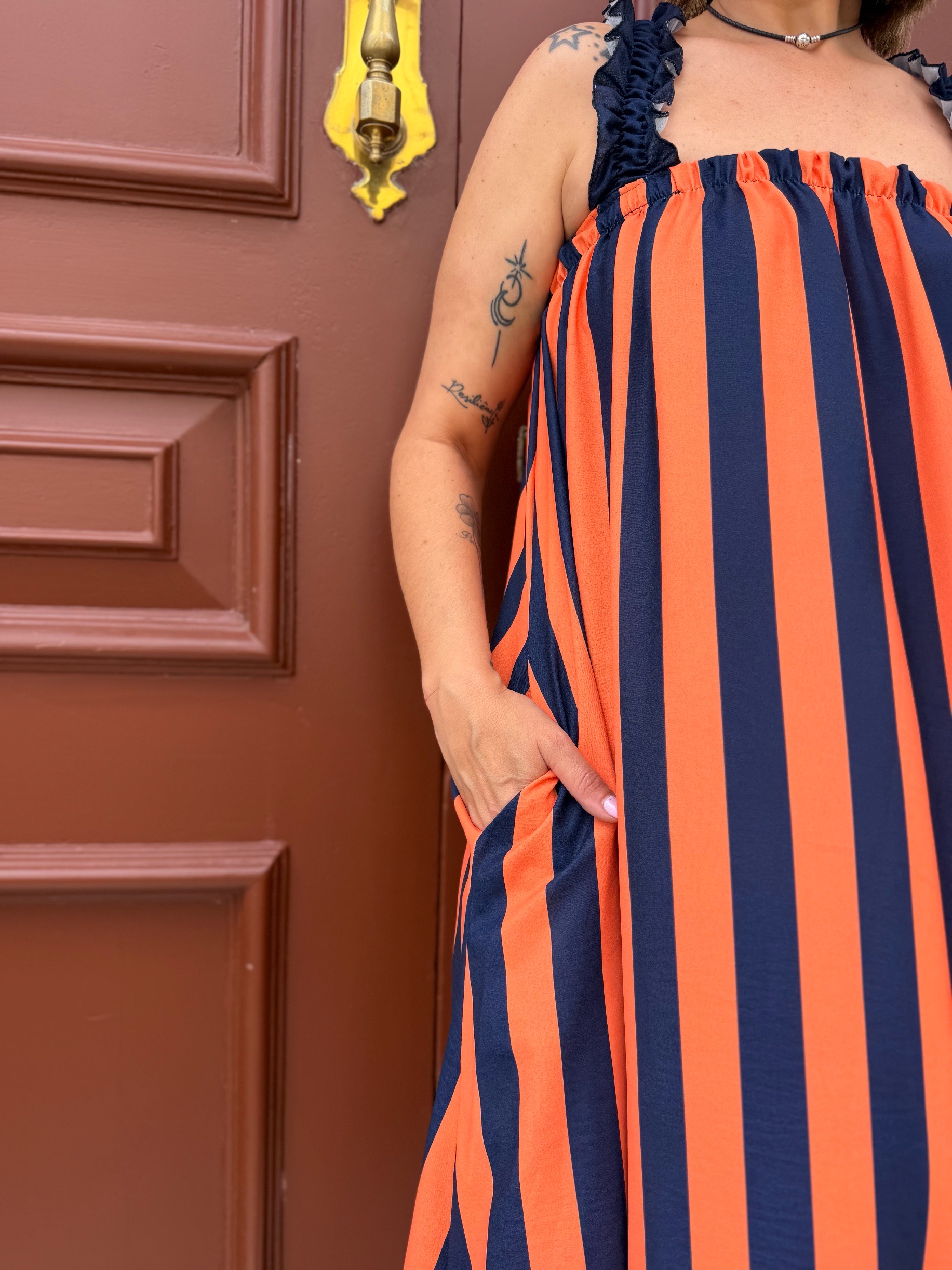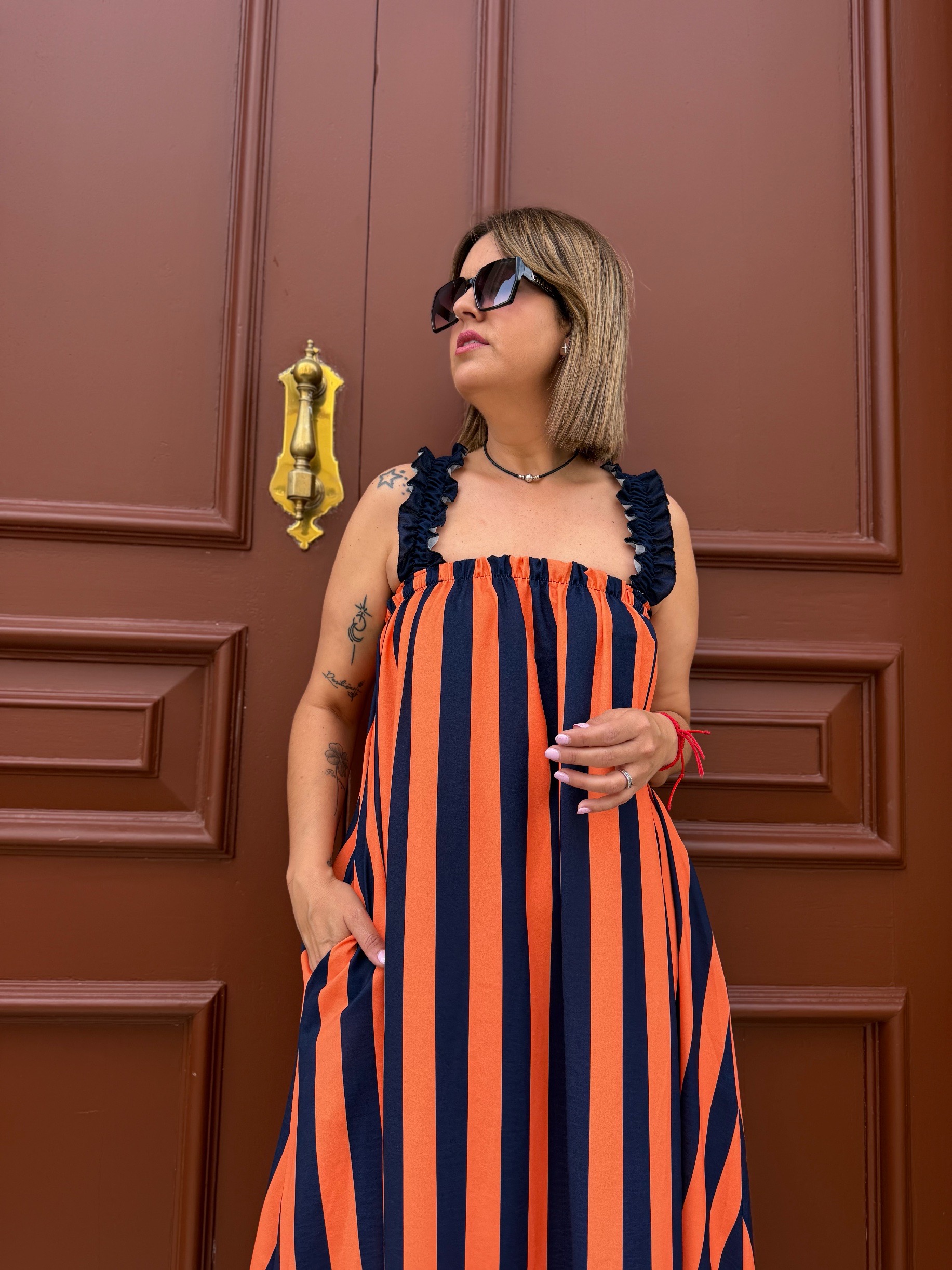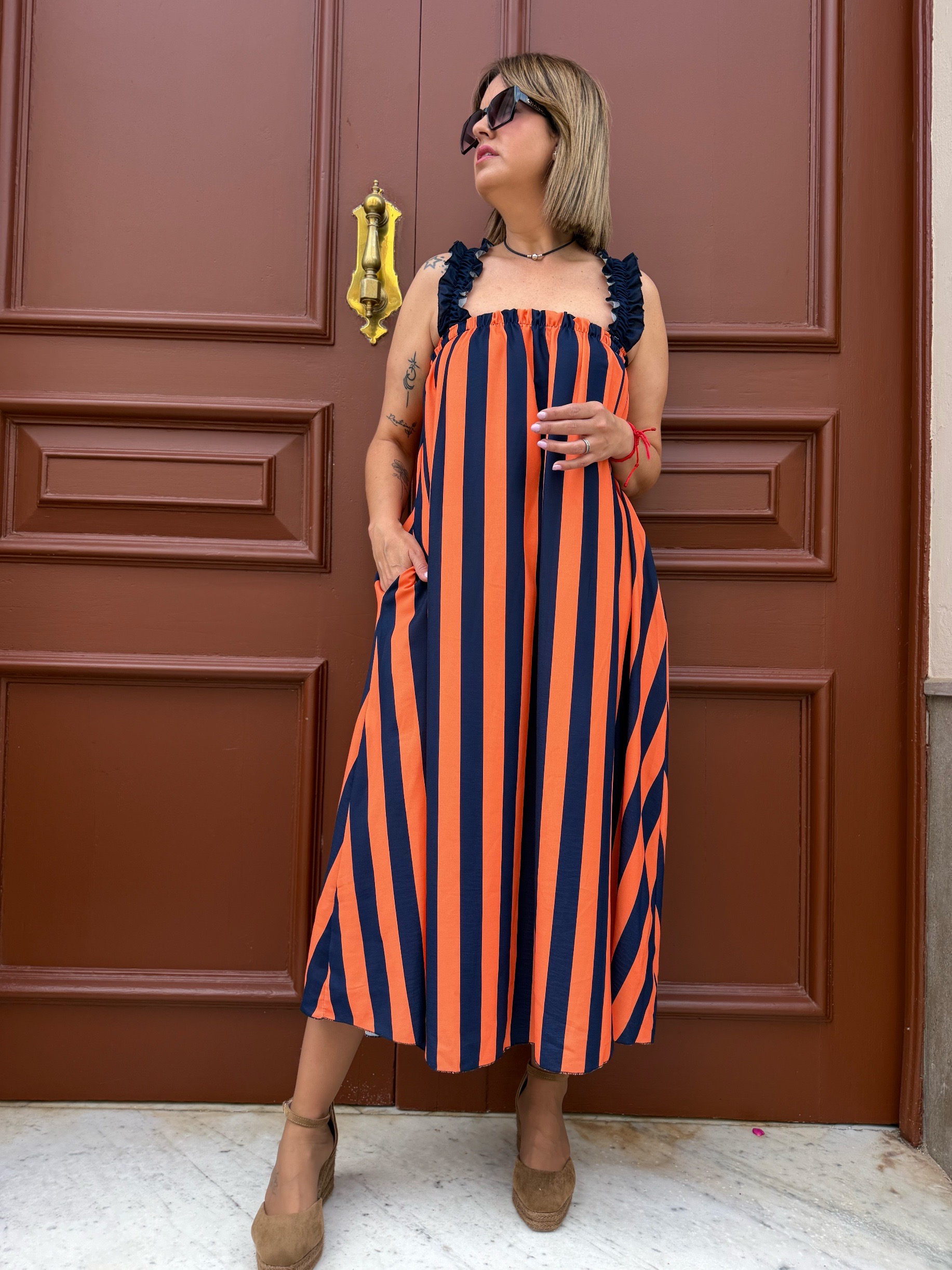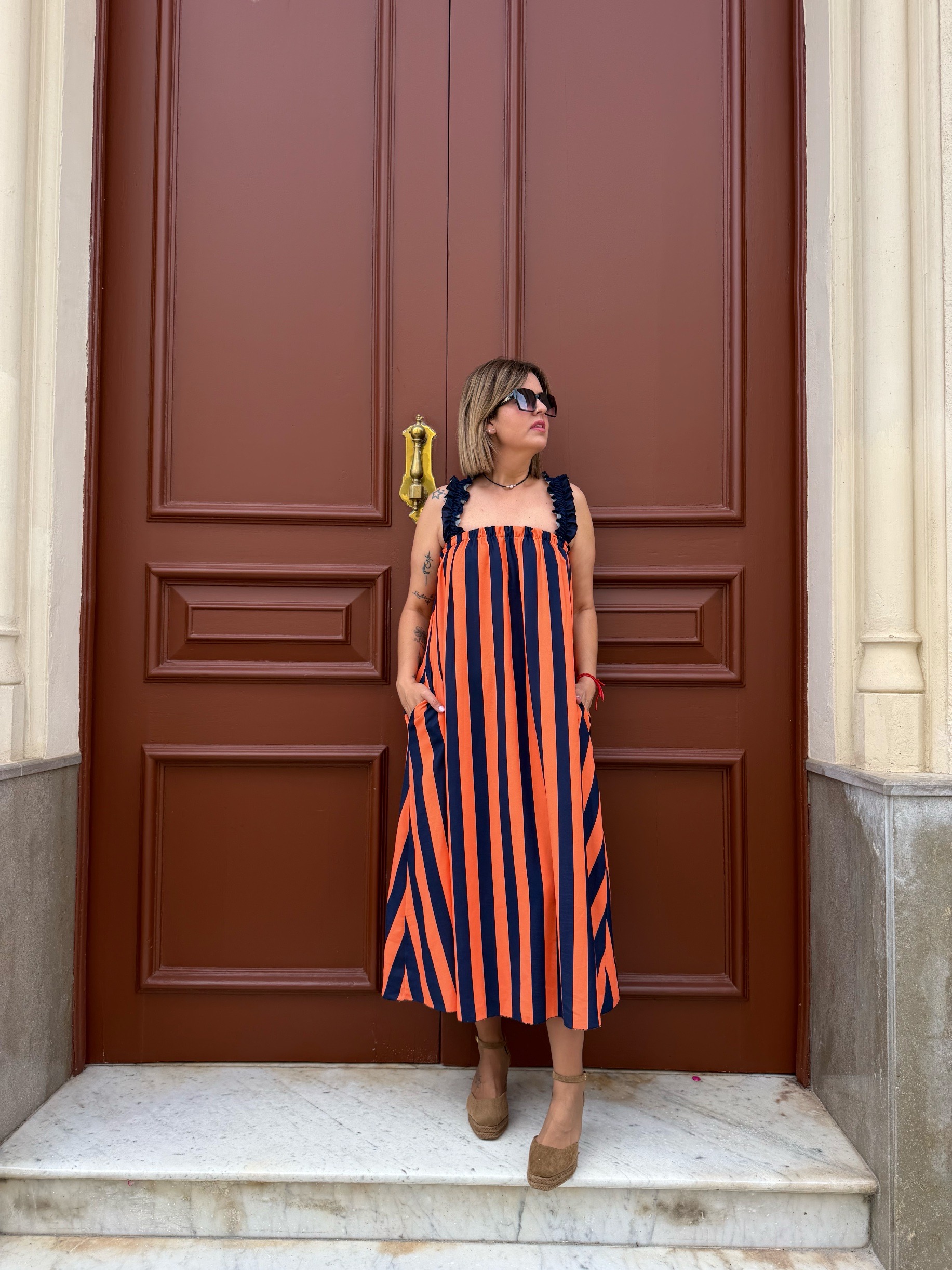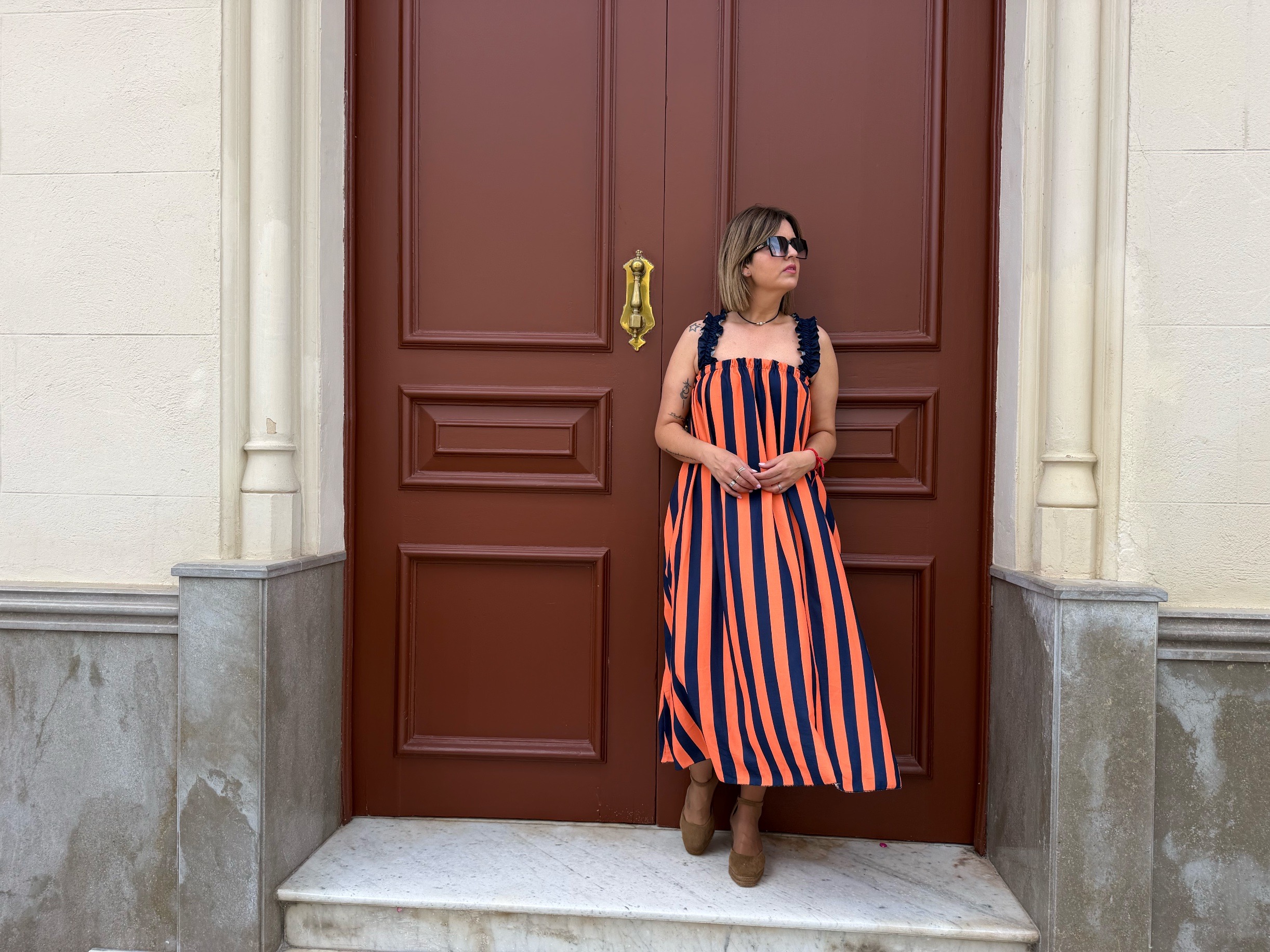 Inspírate en la esencia del verano italiano con el Vestido Capri Rayas, una pieza fresca, elegante y con ese aire effortless chic que nunca falla. Sus líneas verticales en tonos vibrantes estilizan la figura, mientras su tejido súper fluido crea un movimiento ligero y favorecedor a cada paso.