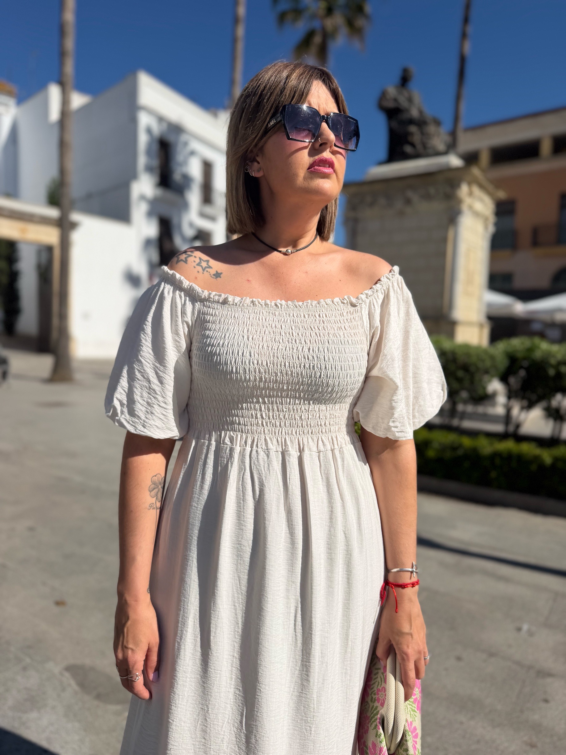 La falda larga con caída fluida alarga visualmente la silueta, creando un efecto elegante y muy favorecedor. Ideal para esos días en los que quieres ir cómoda pero con un look más especial.
